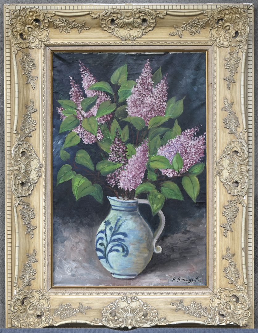 “Vase with lilacs.” Oil on canvas, signed; A. Sandijck.
