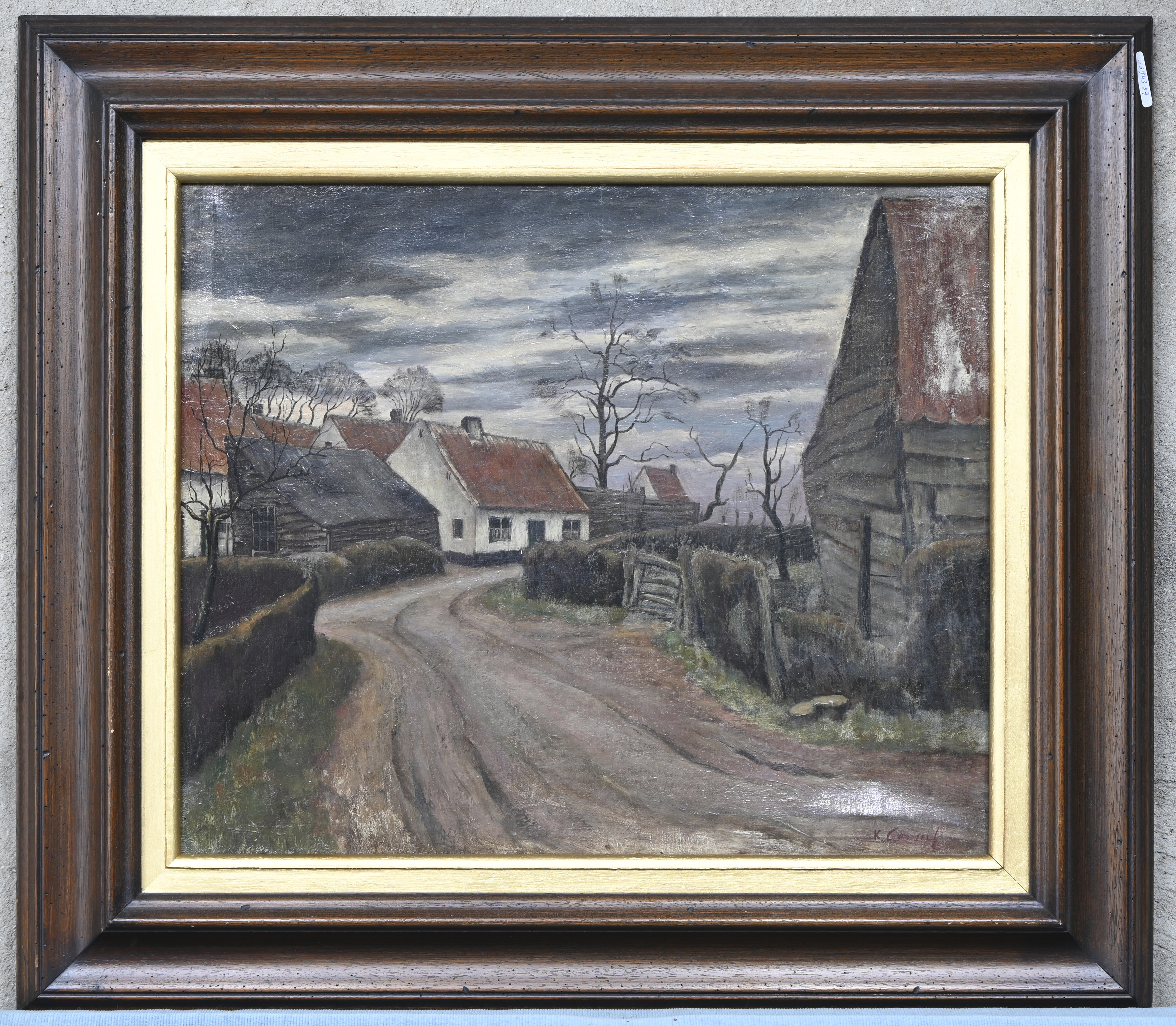 “Veldweg met hoeve”. Olieverf op doek. Gesigneerd.