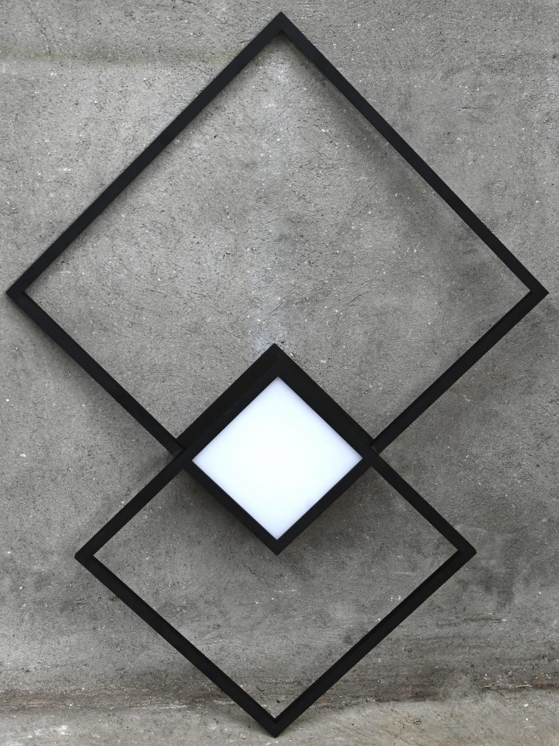 "VENN 1.0". A modern geometric design wall or ceiling lamp made of matte black aluminum. Designed by Wever & Ducré, Belgium.