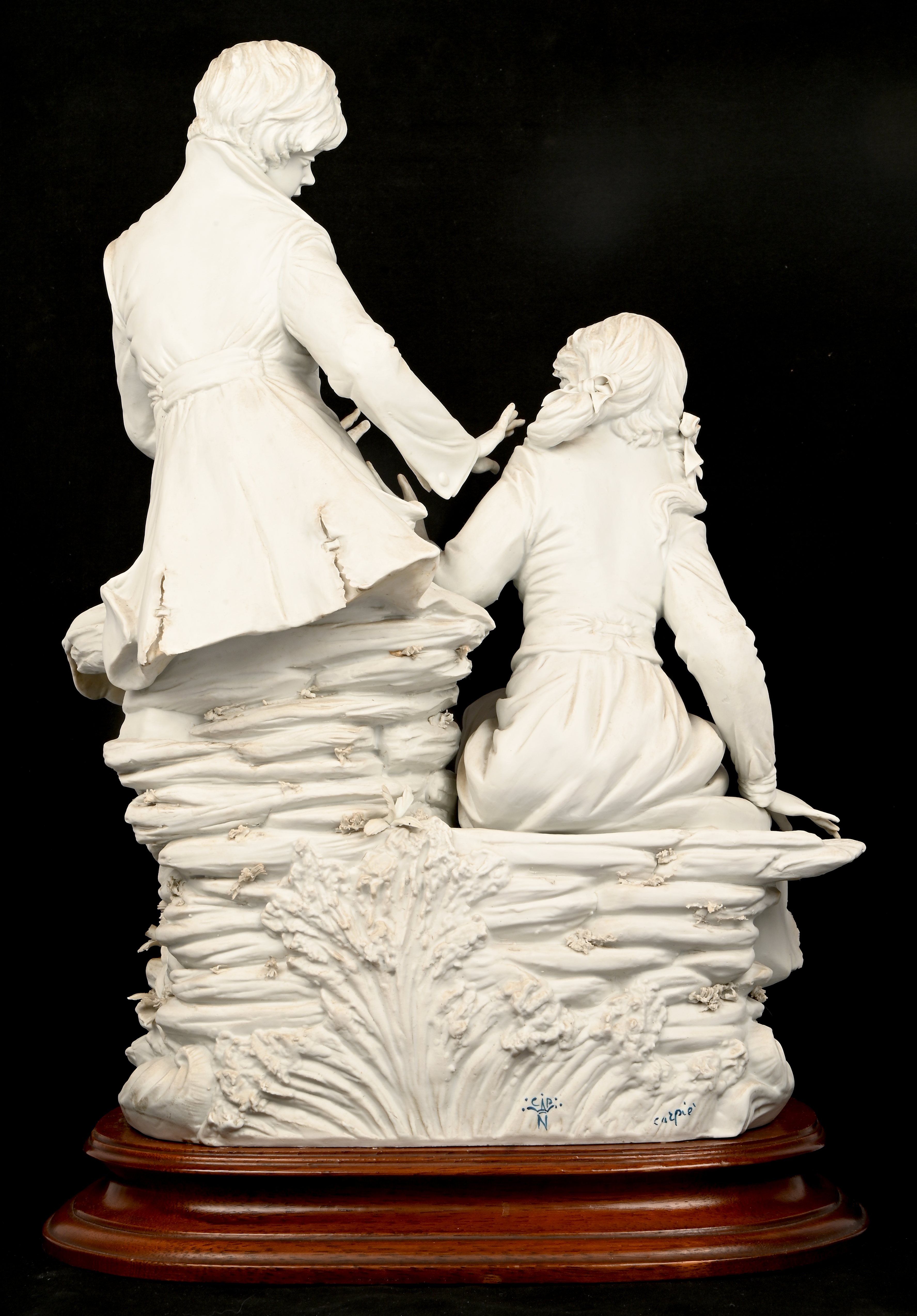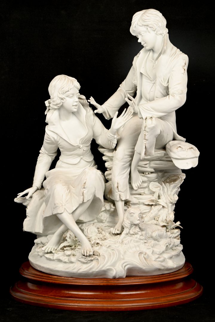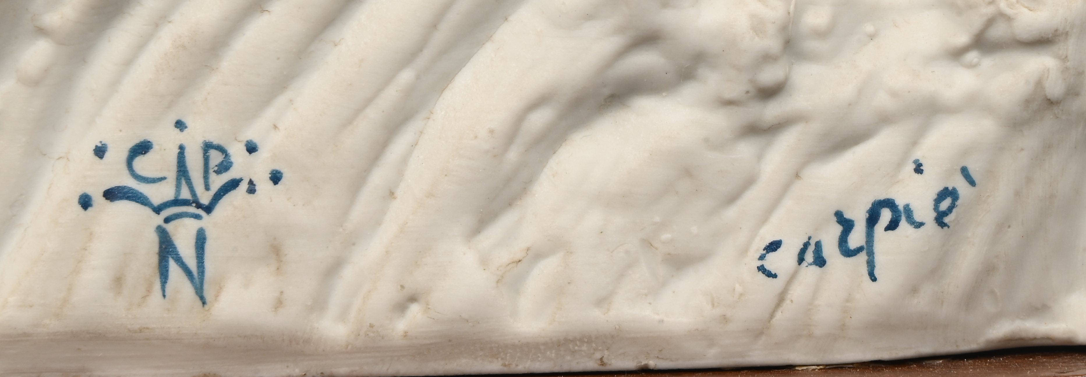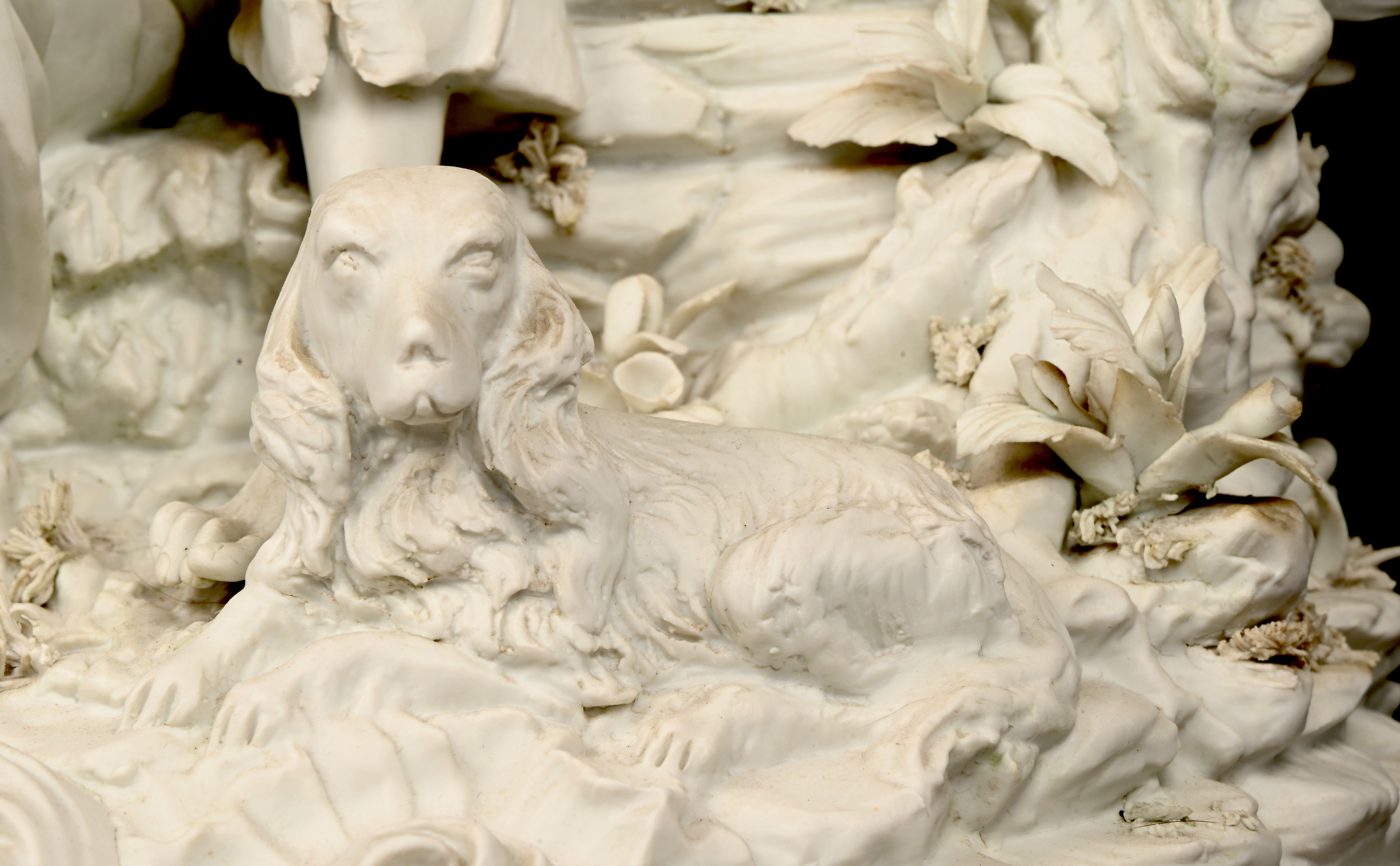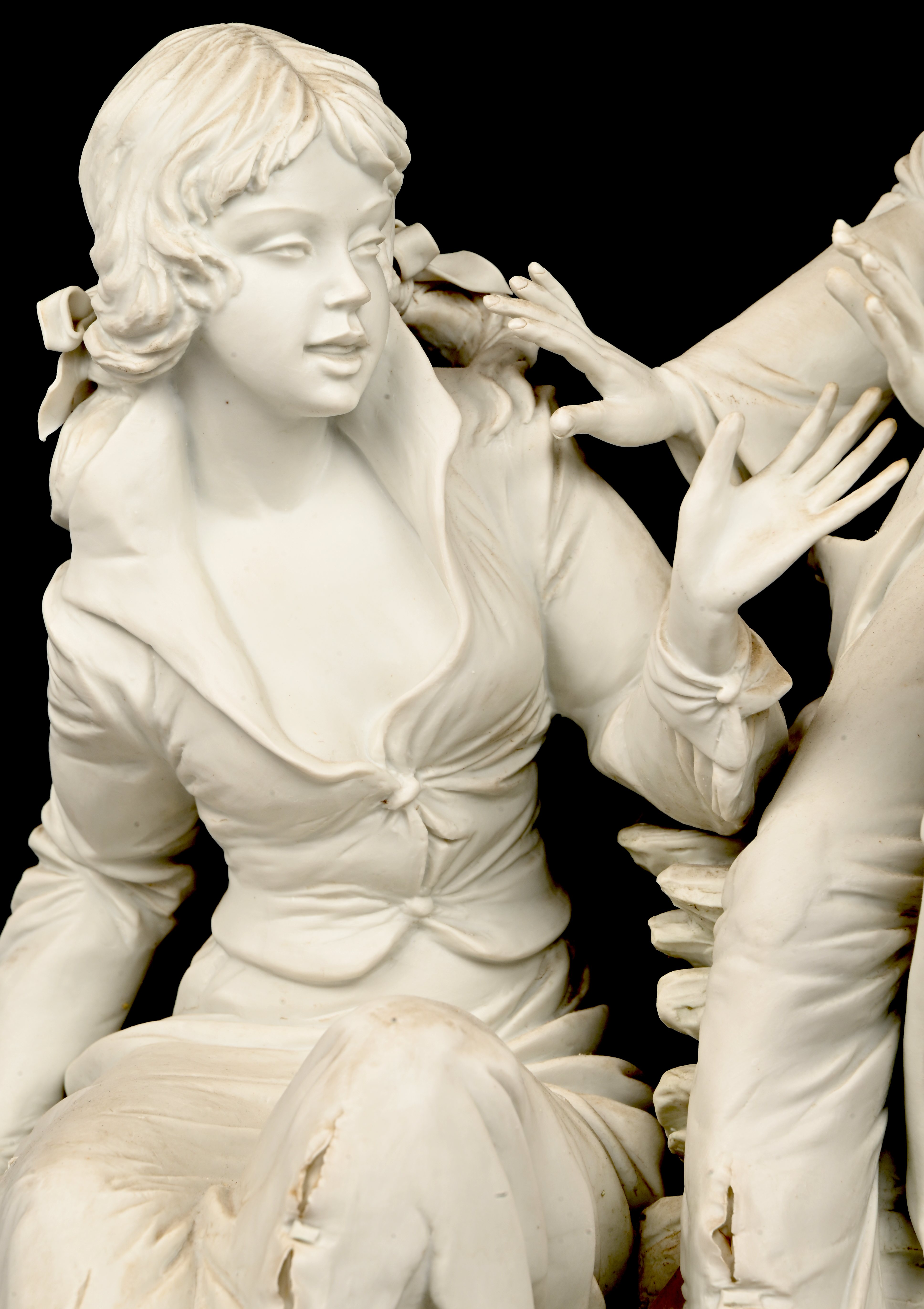 Een Saksisch porseleinen coupe gedragen door twee jonge edellieden, gemerkt met een R.