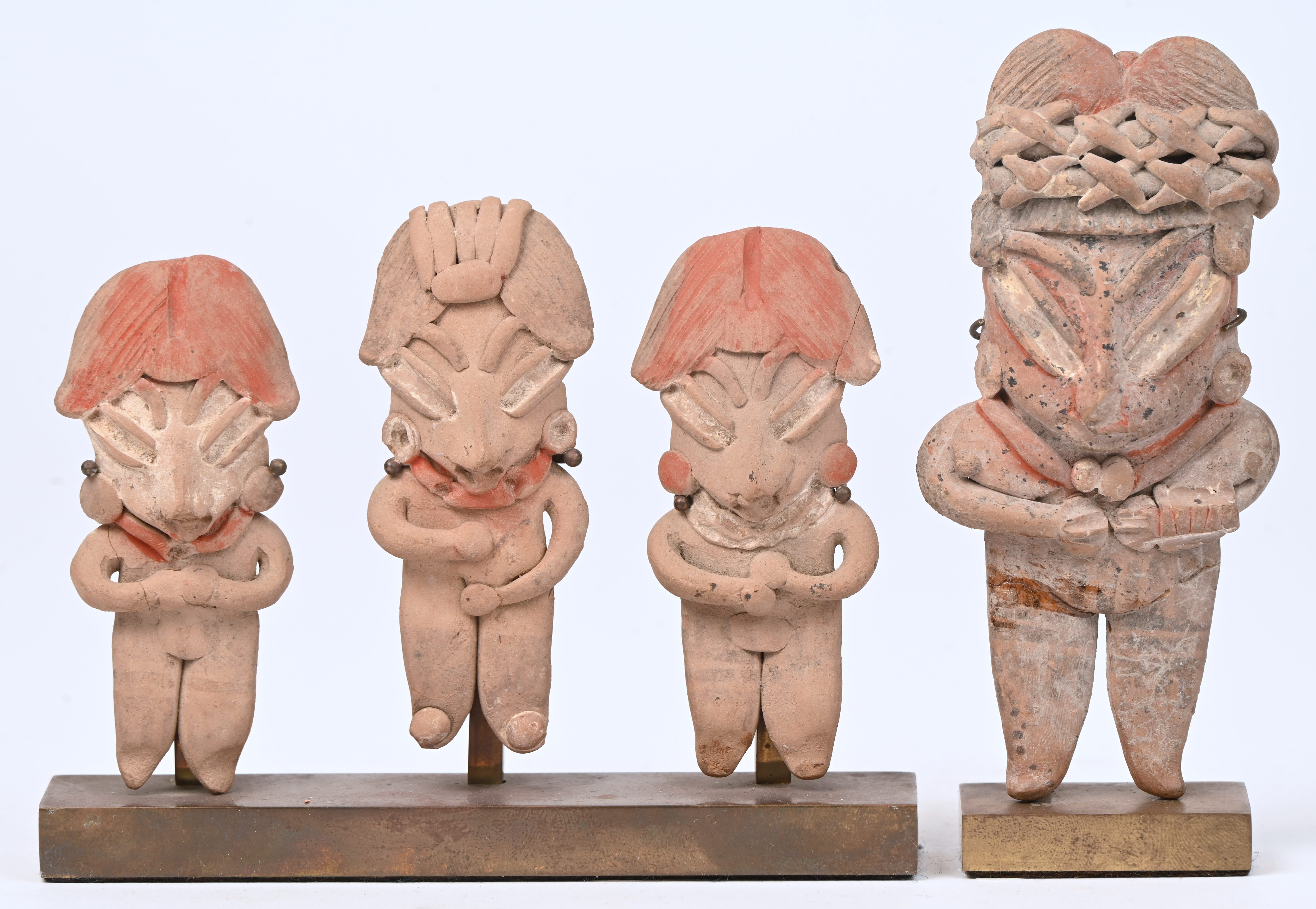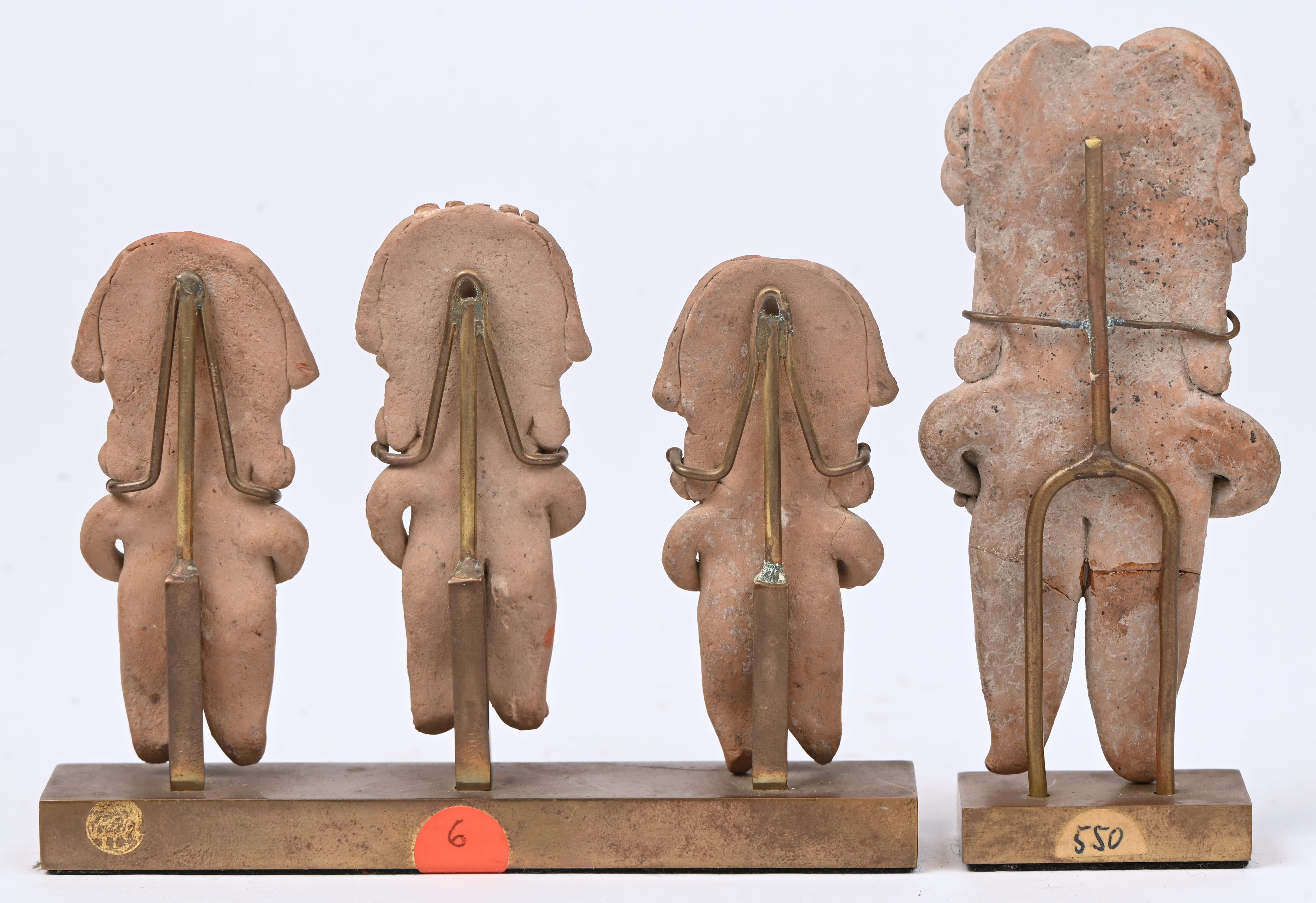 Four earthenware figurines in pre-Columbian style.