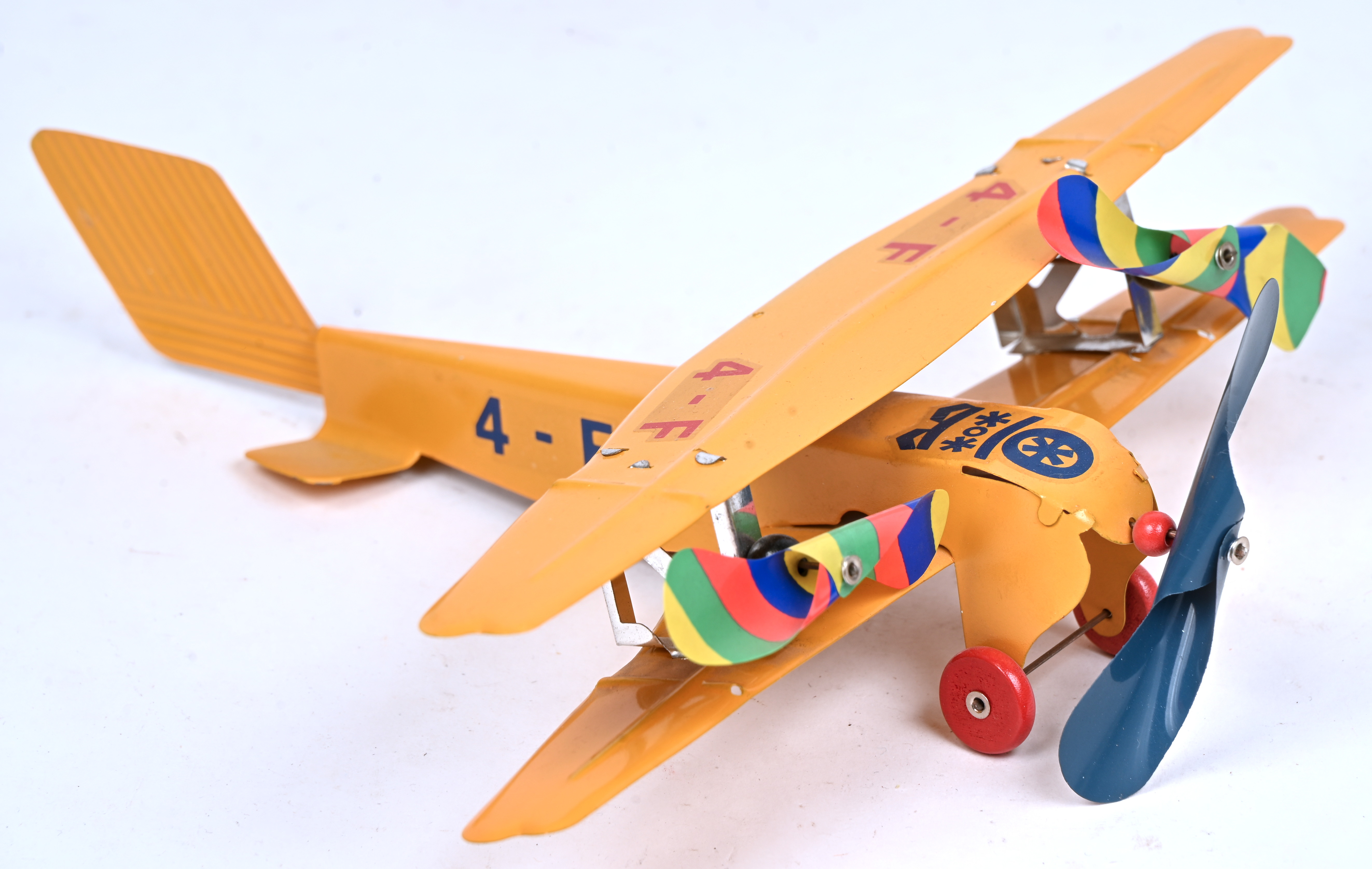 #9Nürnberger Bleichwaren Tucher & WalterEen blikken tweedekker vliegtuig met een werkende stoommotor model T-234. Nr. 7 uit een oplage van 100 exemplaren.