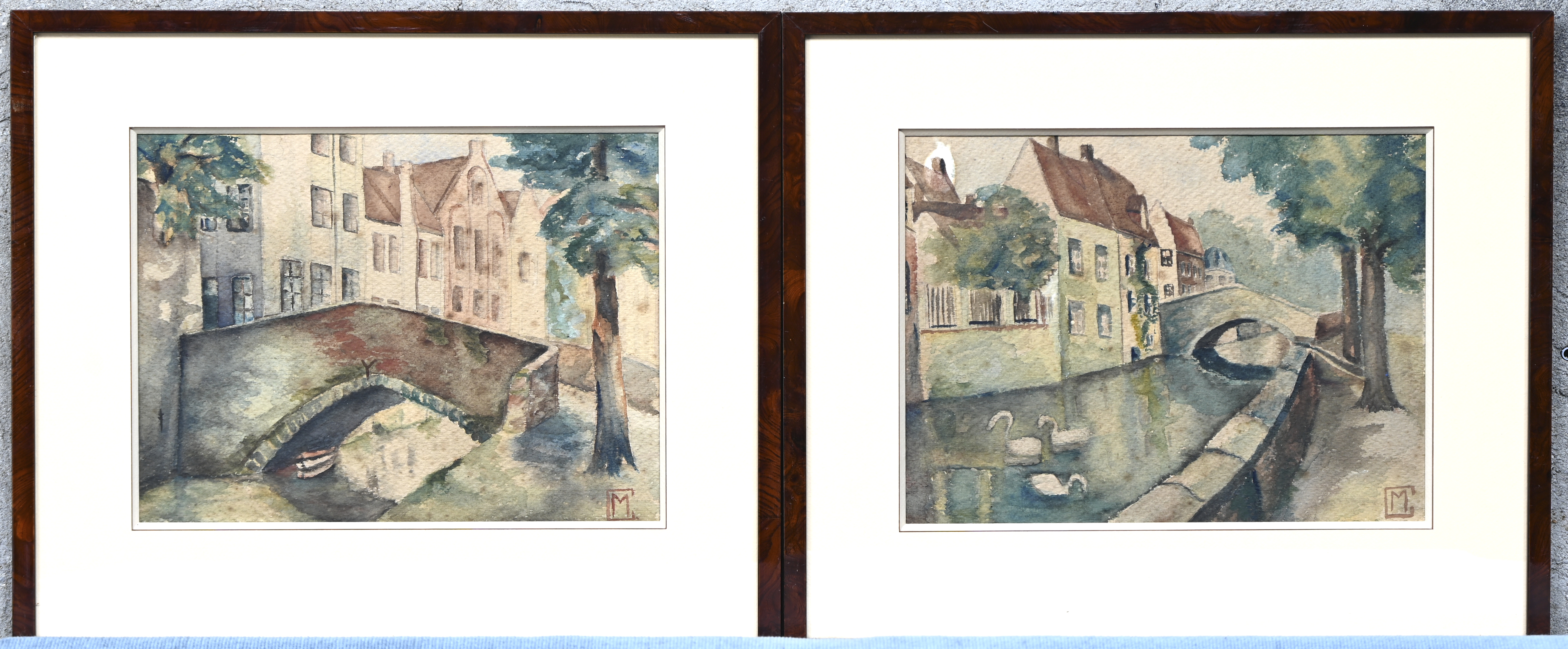 A pair of mixed media drawings, presumably from the 19th century. Monogrammed HB. -