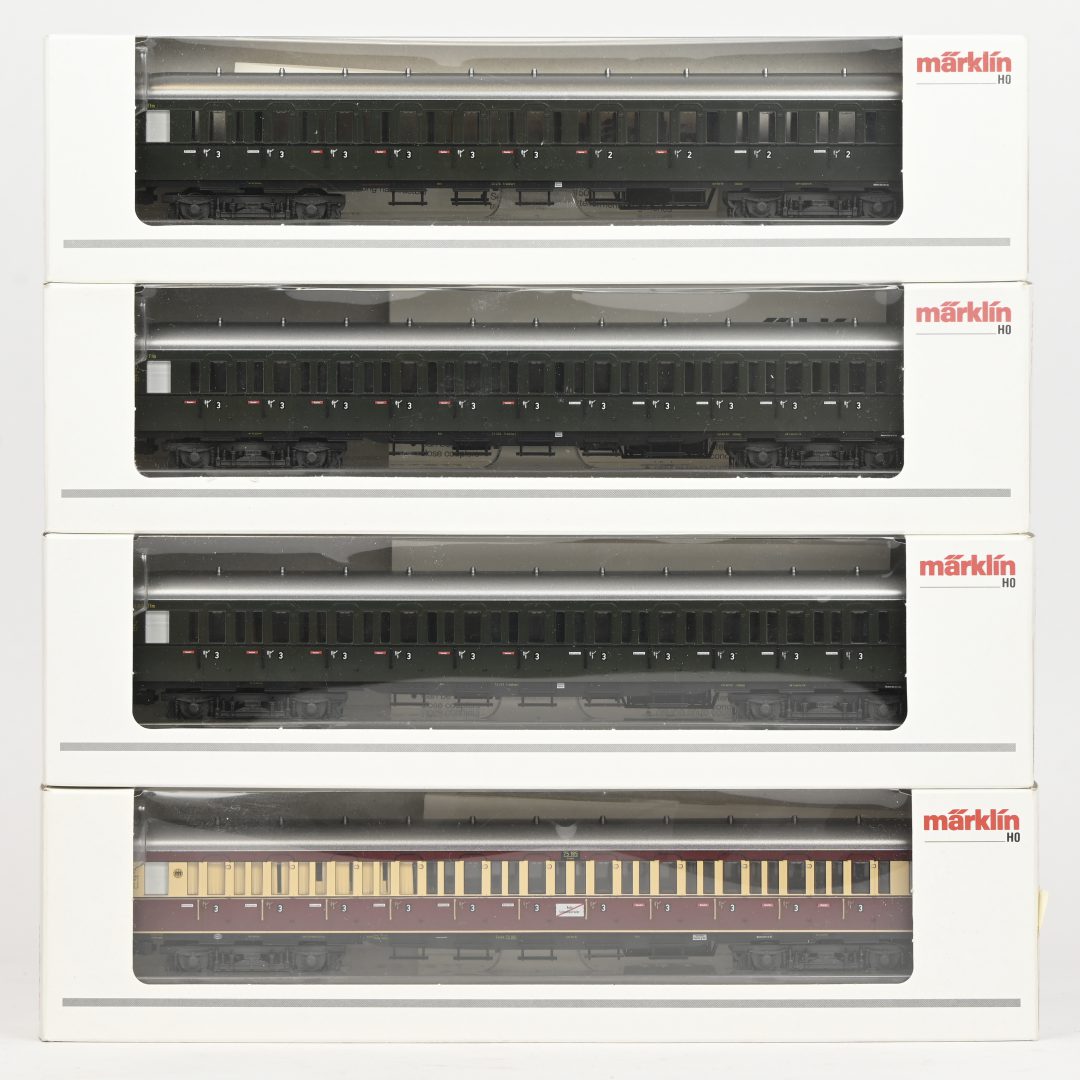 Vier Märklin wagons voor personenvervoer. 43100, 43109, 43110 en 43119. In OVP.