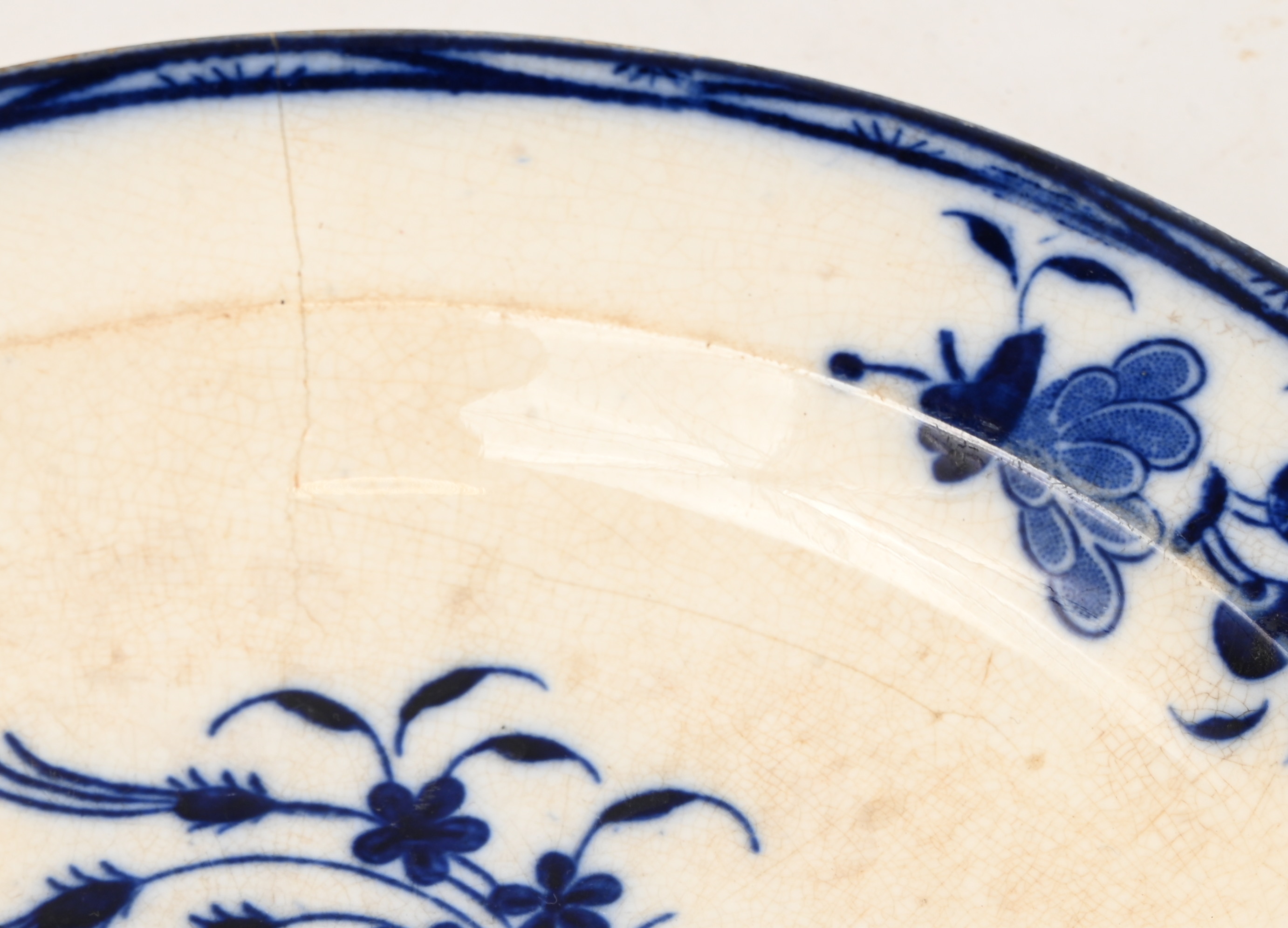 A decorative plate and a scalloped saucer in Imari porcelain, marked at the bottom. With edge damage. -