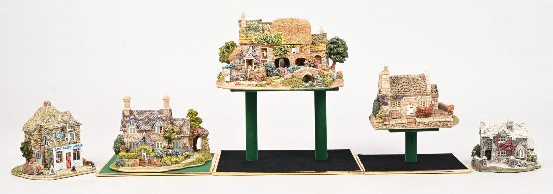 Vijf ‘Lilliput Lane’ huisjes. In OVP, de meeste met attest. ‘Chatsworth Blooms’, ‘Mangerton Mill’, ‘Davy Jones’ Locker’, ‘Dovetails’ & ‘Langdale Cottage’.