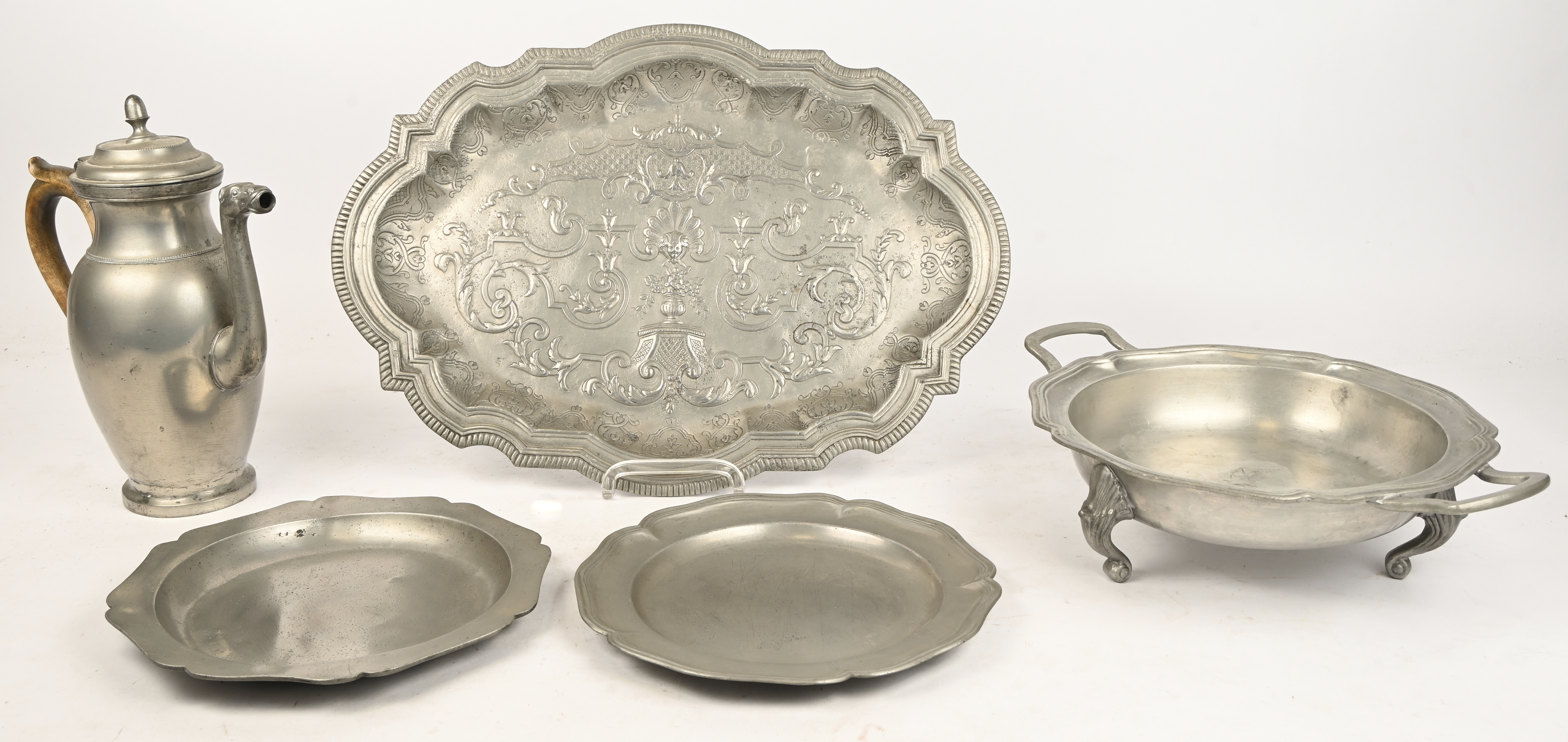 Two pairs of pewter candlesticks. With a combined weight of 1.1 kg. -
