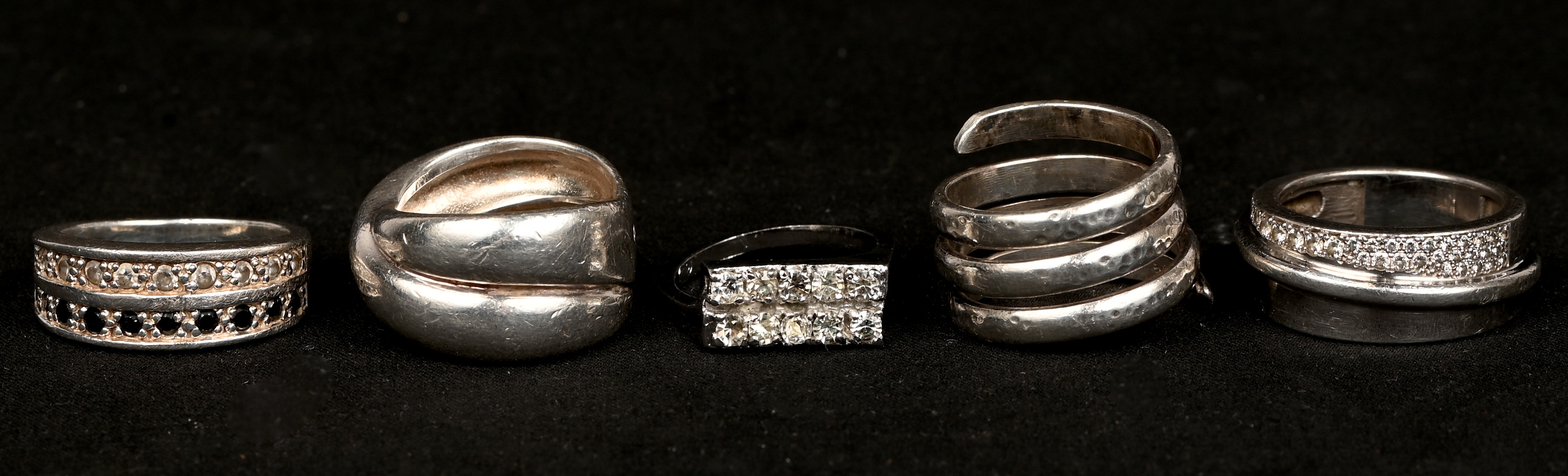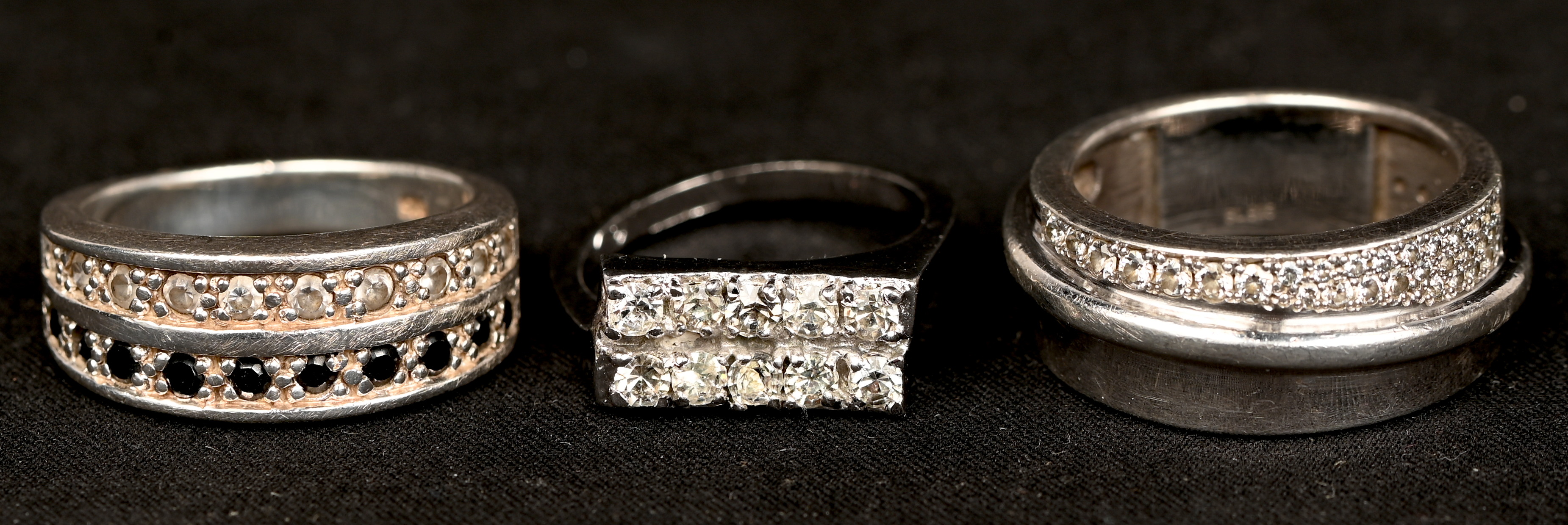 Een 18 kt witgouden ring bezet met fantasiestenen.