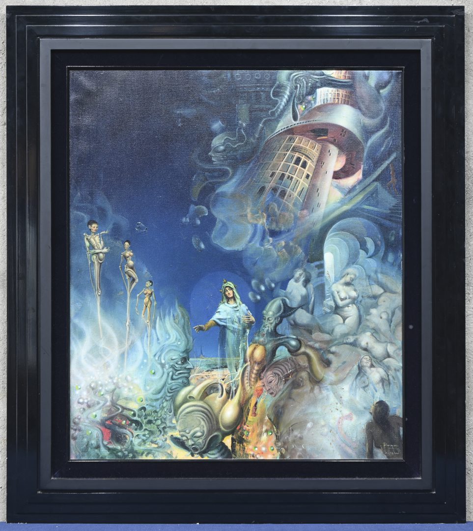 #489Roger Van Belleghem‘Surrealistisch landschap’, olieverf op doek. Getekend.
