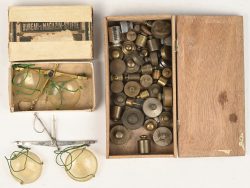 Two small scales and a mixed lot of weights.