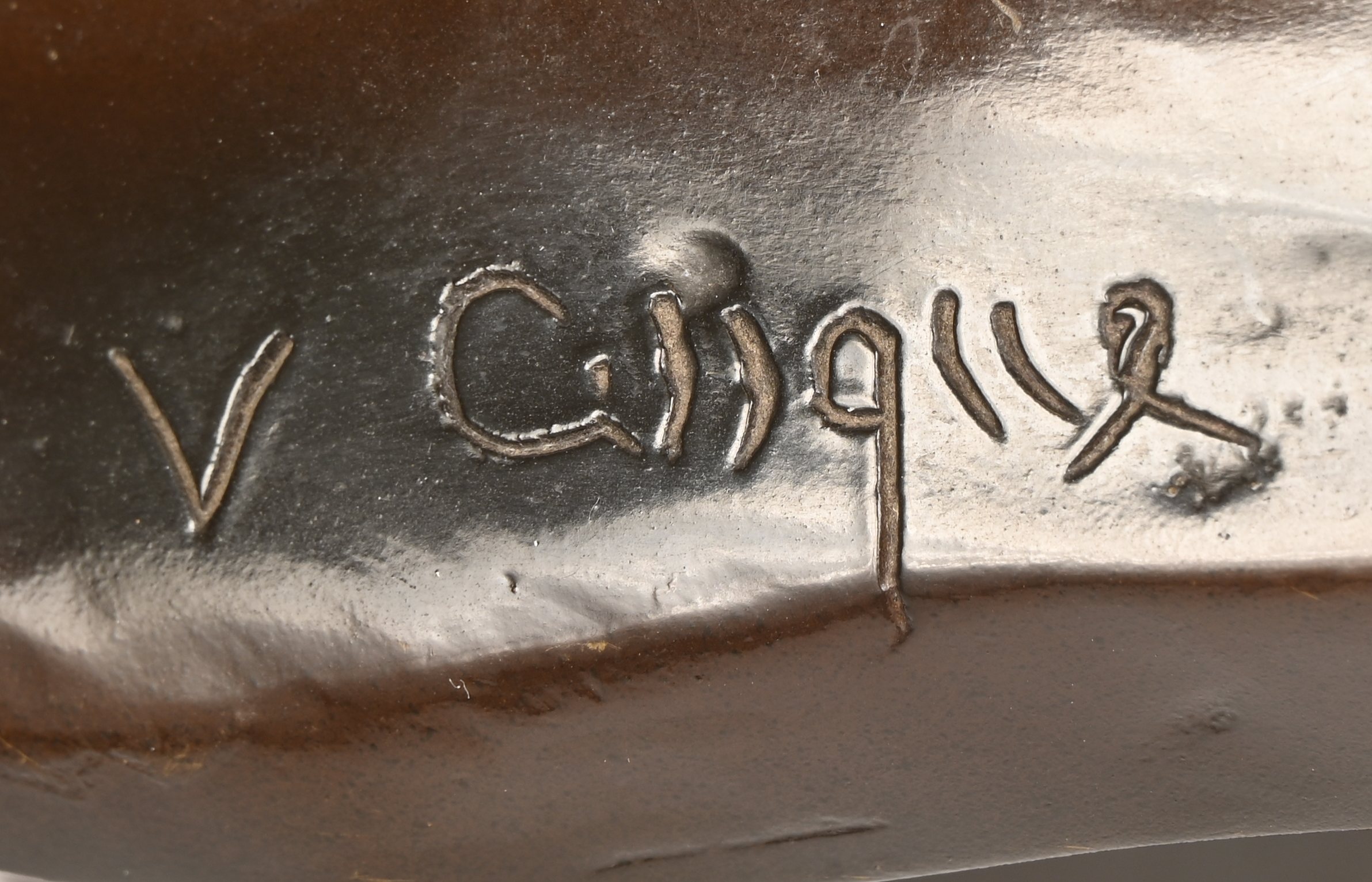 #322Elie Van Damme‘Zittend meisje’, een aardewerken Amphora beeldje door Elie Van Damme. Gemerkt; N°12, AMPHORA.
