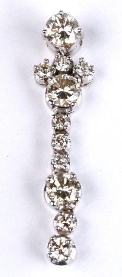 #120Een 18 kt witgouden hanger bezet met briljanten met een gezamenlijk gewicht van +- 1,81 ct. SI2 IJK.