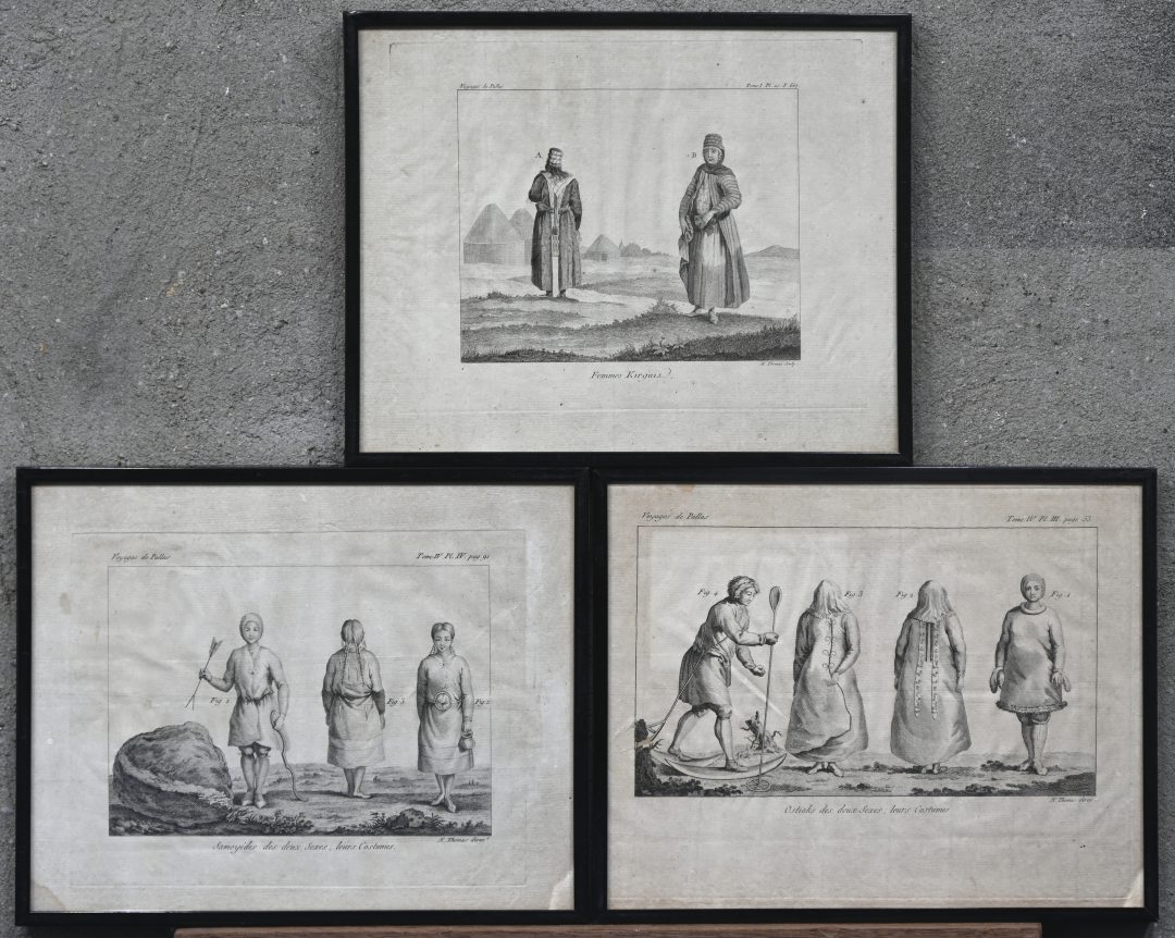 “Voyages du professeur Pallas”, een lot van 3 gravures uit een boek.