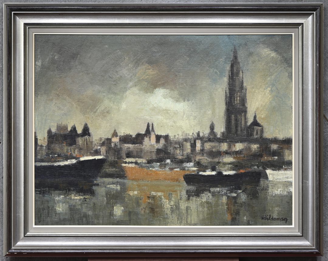 #104Jean-Guy BeernaertPeriod: 1928-1999‘De kathedraal van Antwerpen’, olieverf op doek. Getekend J. G. Beernaert