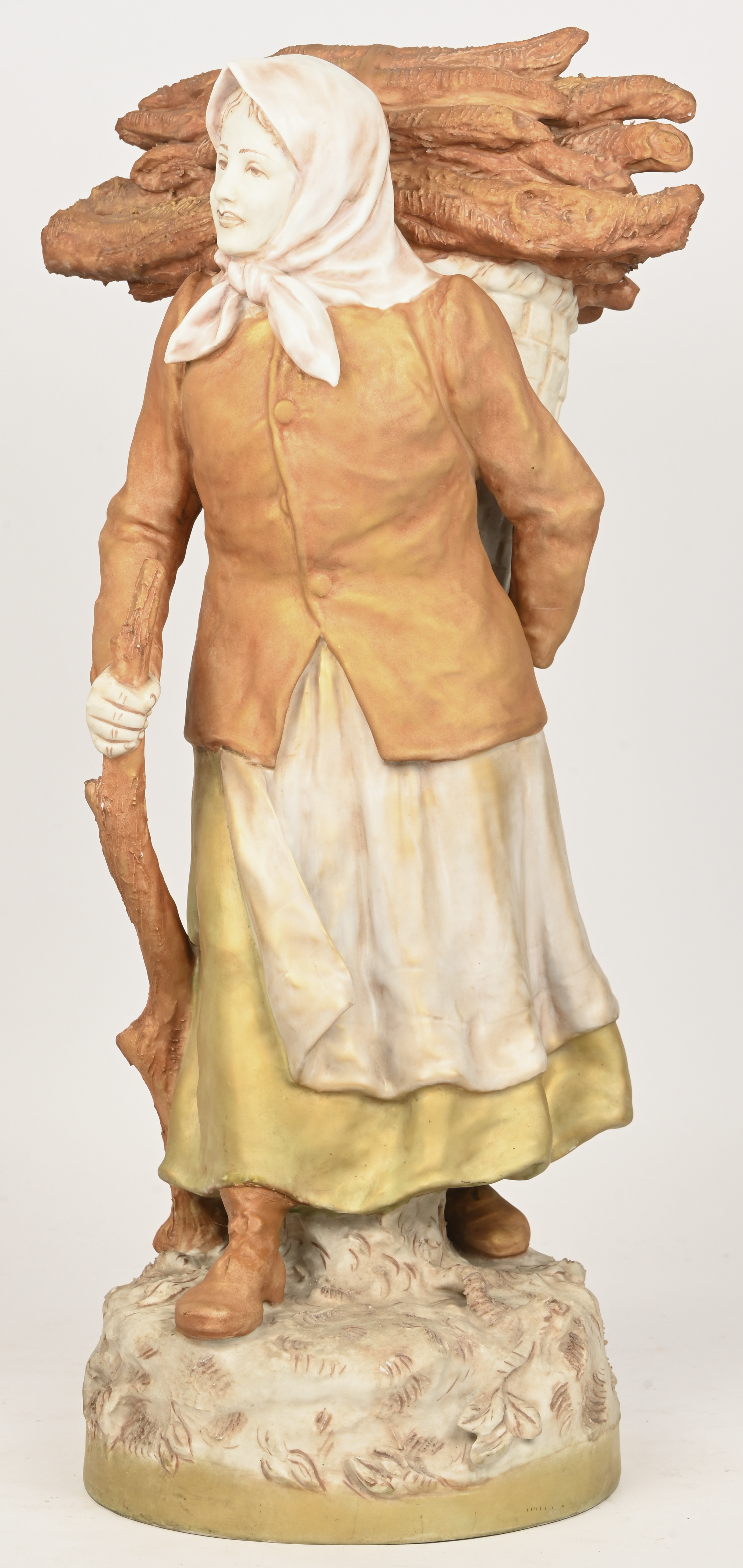 Een gesculpteerd houten beeld van een Indonesische dame.
