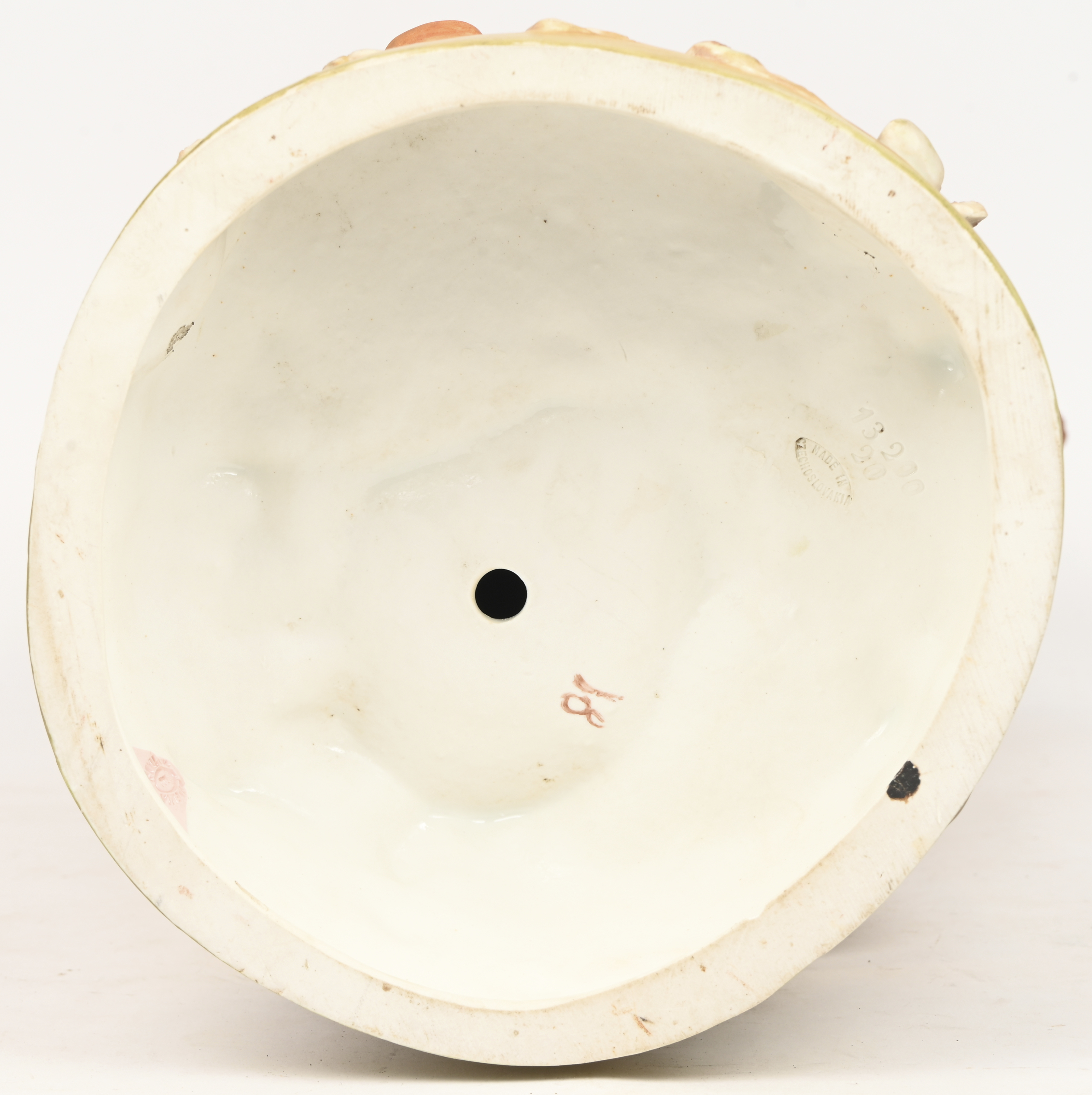 Een vintage lava-glaze vaas, met de afbeeldingen van Pan en Bachus. Getekend; Italy, 437.