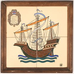 A commemorative frame with 4 tiles for the 50th anniversary of Guillot & Cie, manufactures ceramiques d’Hemixem, 1898-1948. -
