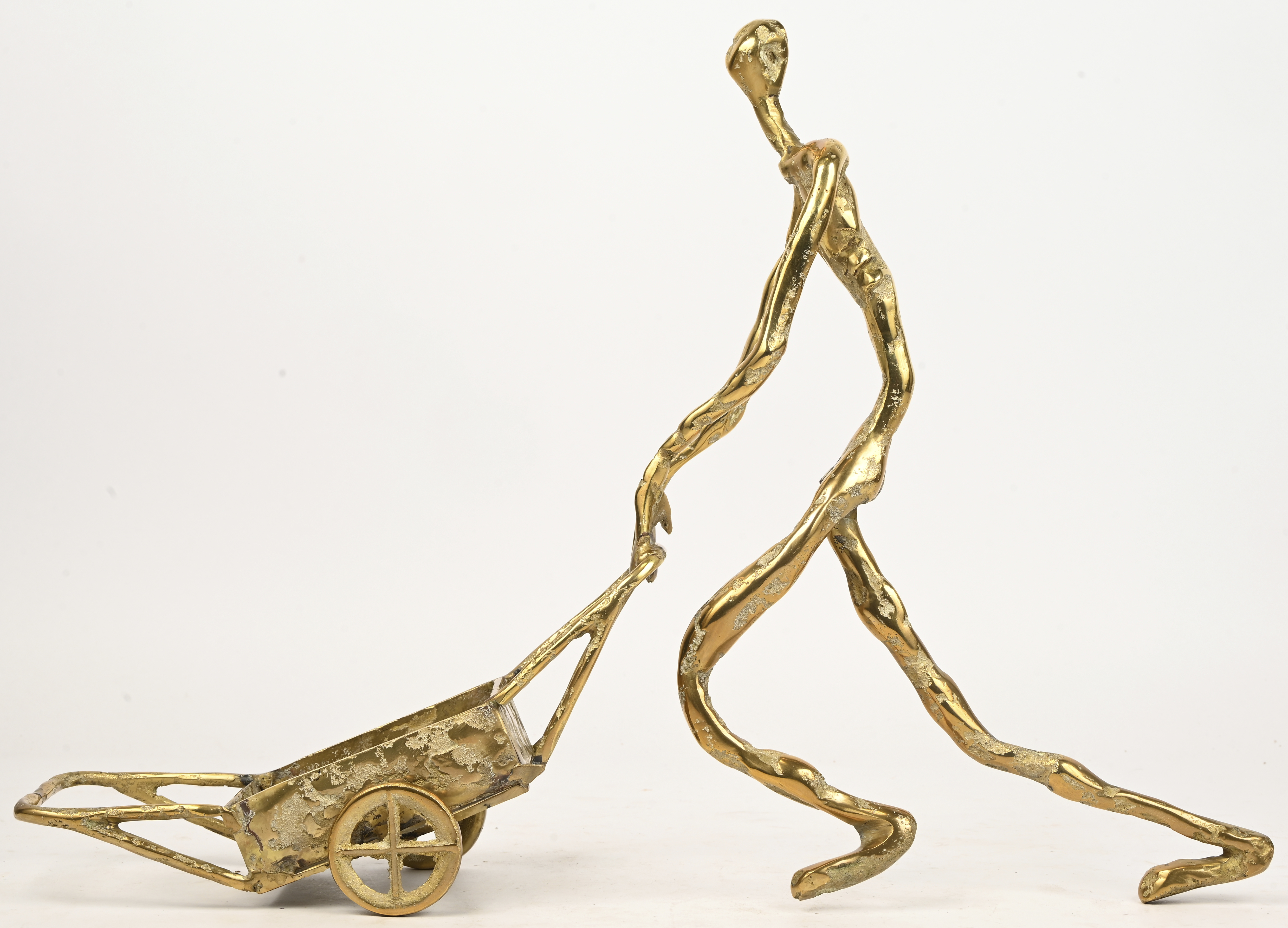 Een bronzen zeemeermin met een grote gouden parel in schelp. Getekend; Zache, Diseno, Spain. Onderstel van een salontafel, blad is manco.
