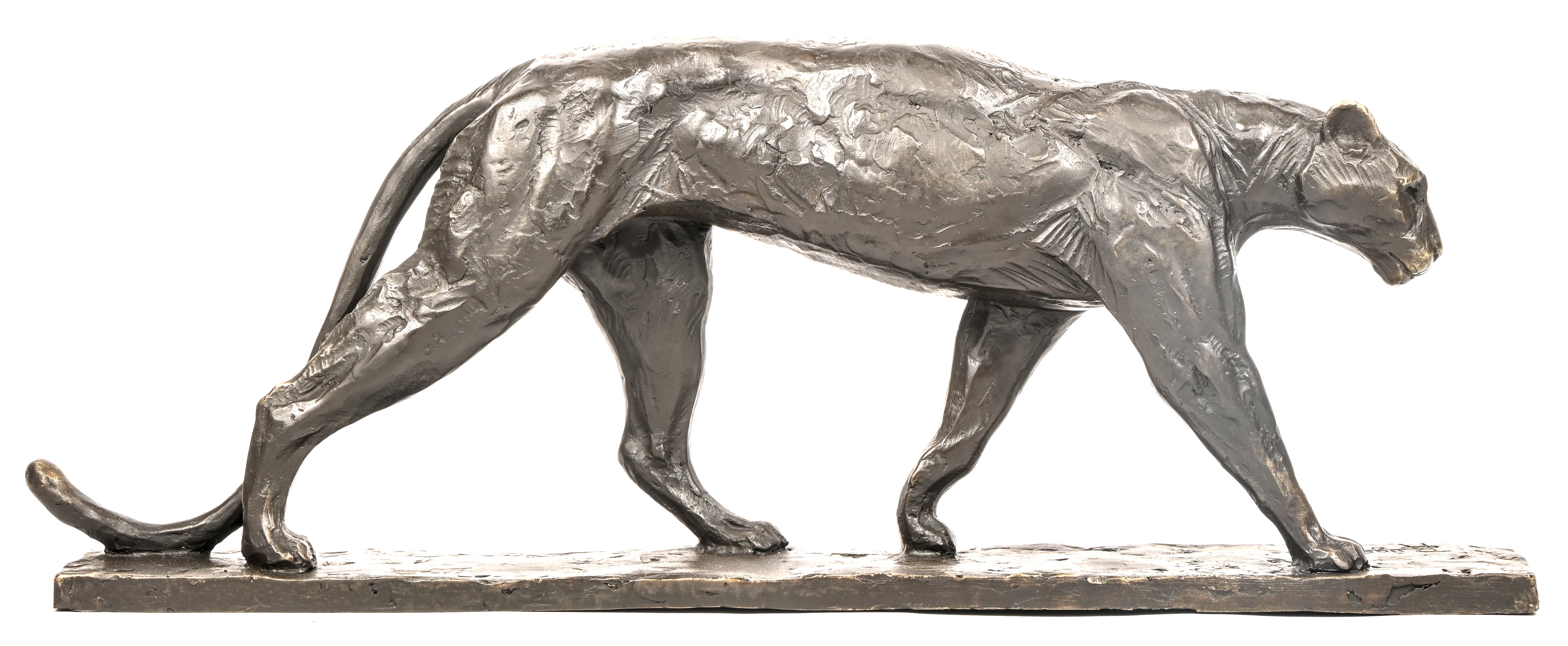 A nickel-plated metal sculpture of a roaring lion. Signed: Meurisse.No longer availableDim. Lengte 30 cmEstimate: € 40 / 60 -