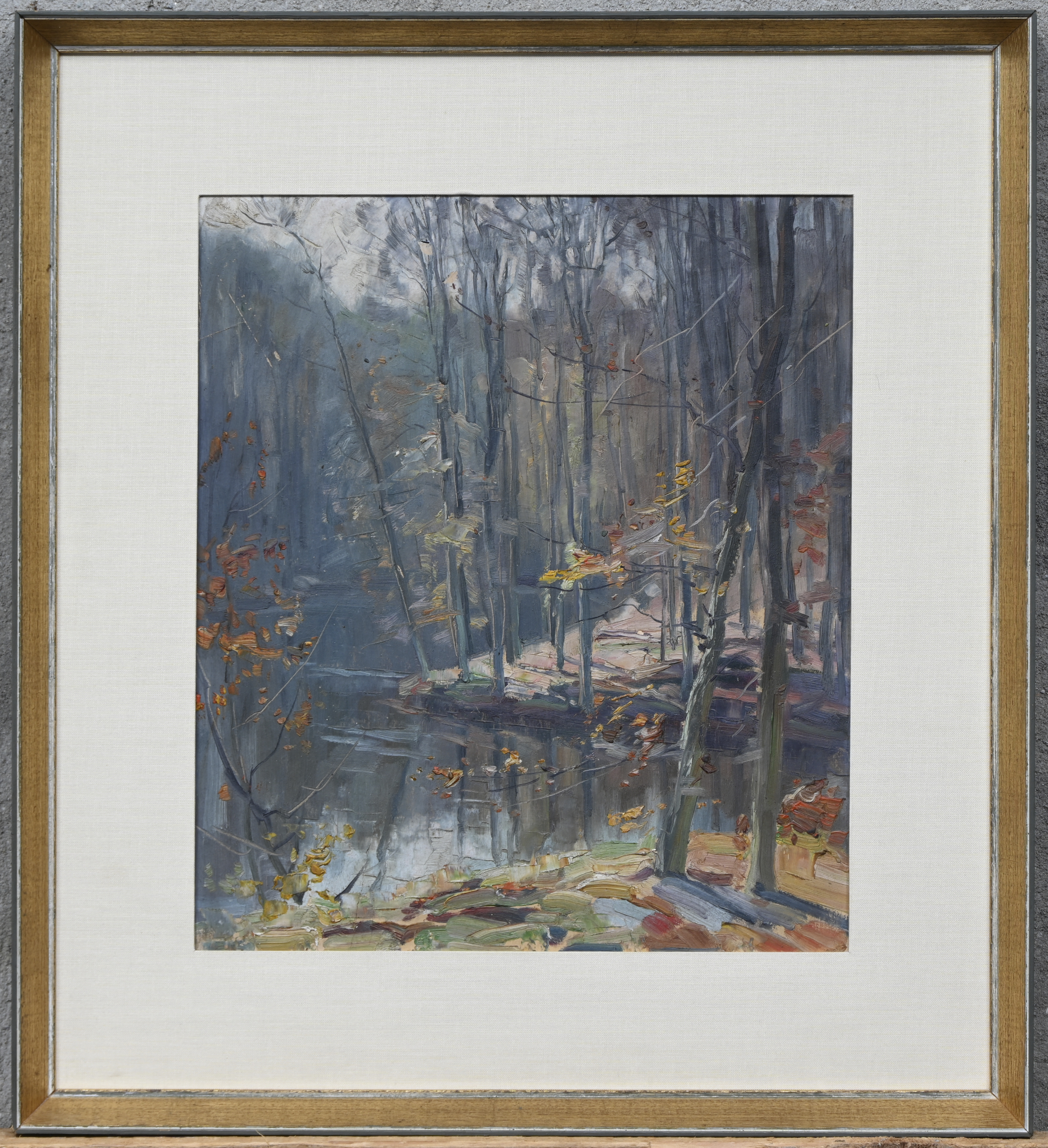 #544Piet Mees“Hoeve aan de stroom.” Olieverf op doek. Gesigneerd.
