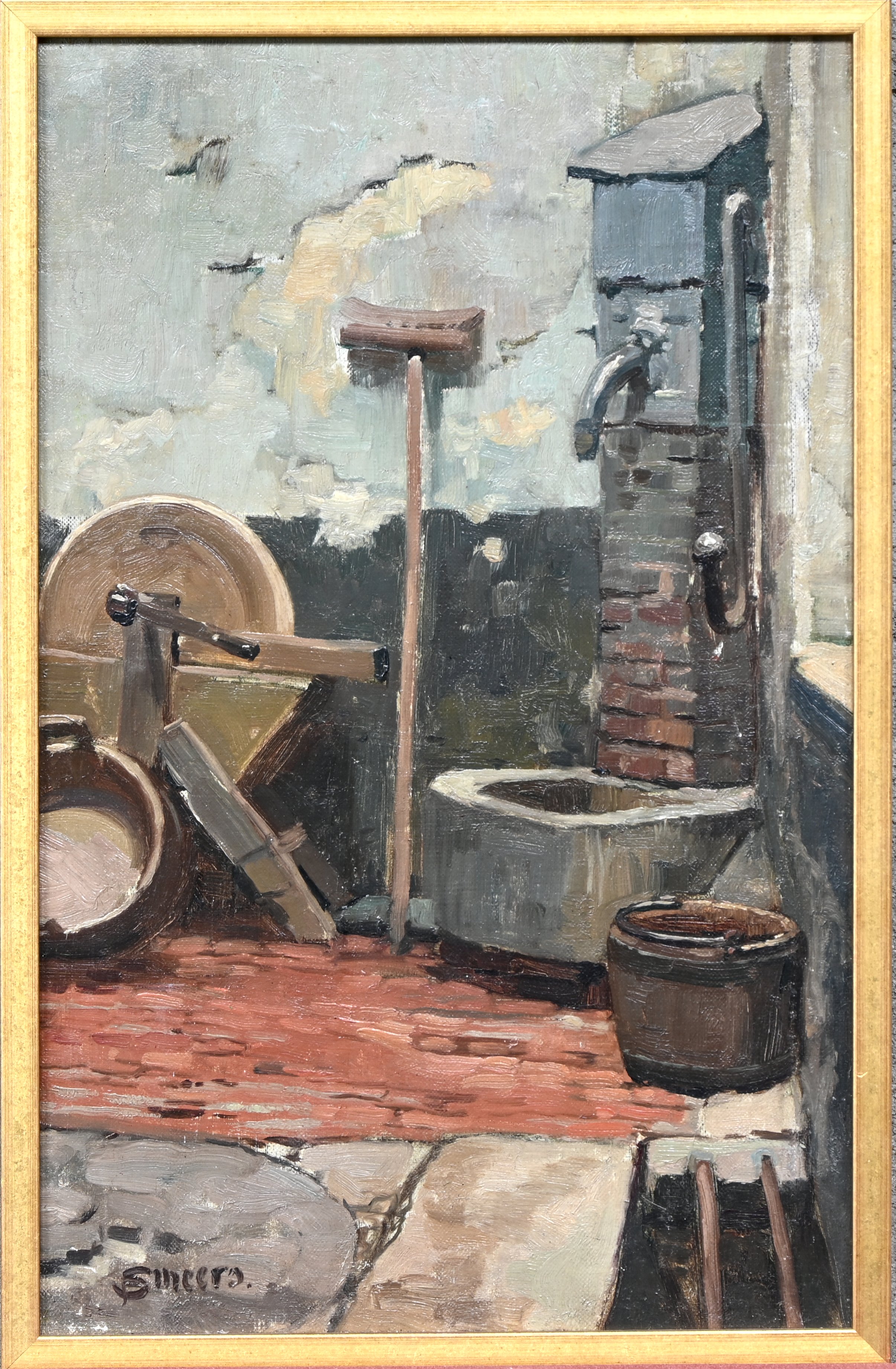 'Water pump', oil on canvas. Signed Smeers.