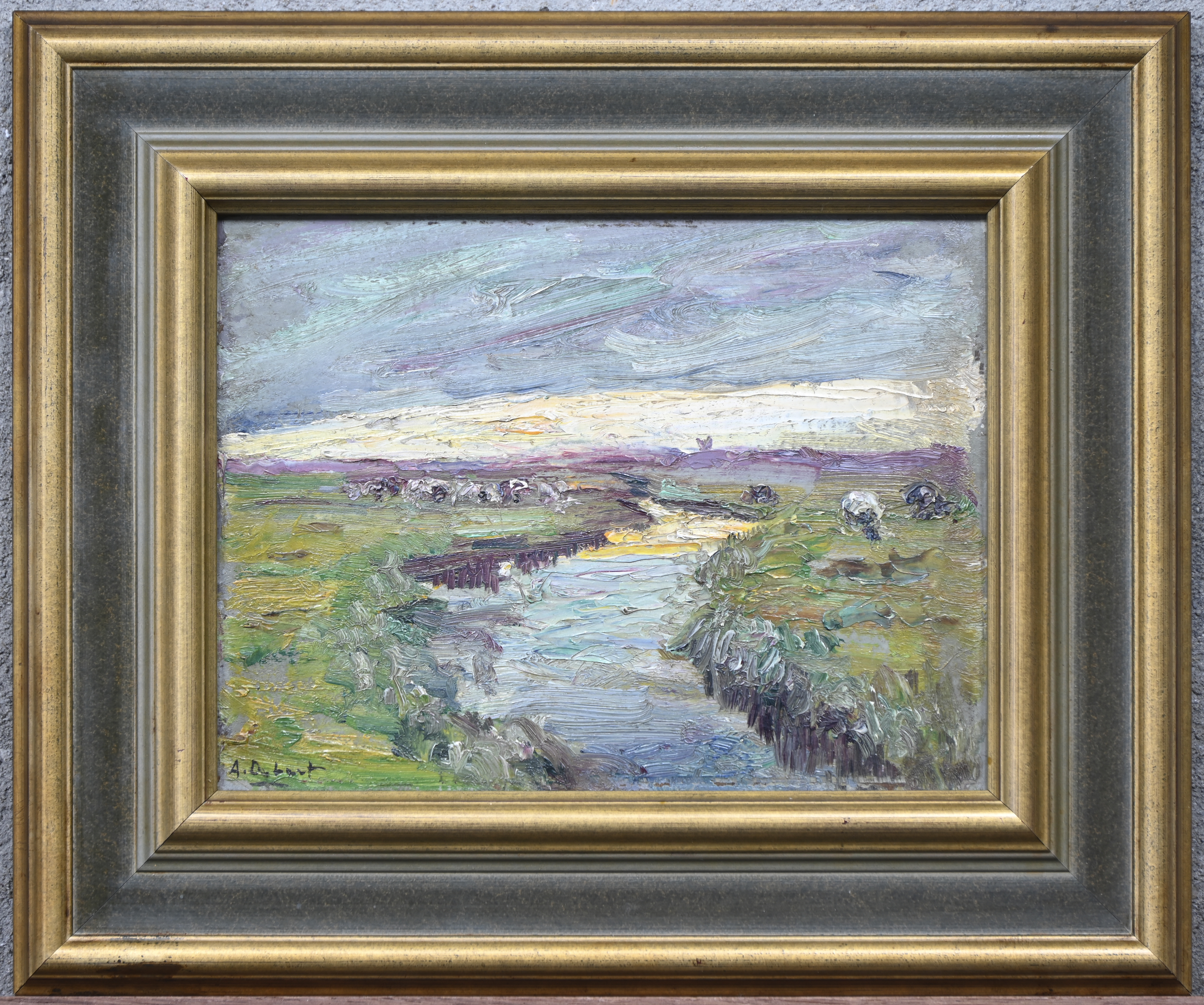 'Duinenzicht', oil study on panel. Signed A. De Laet.