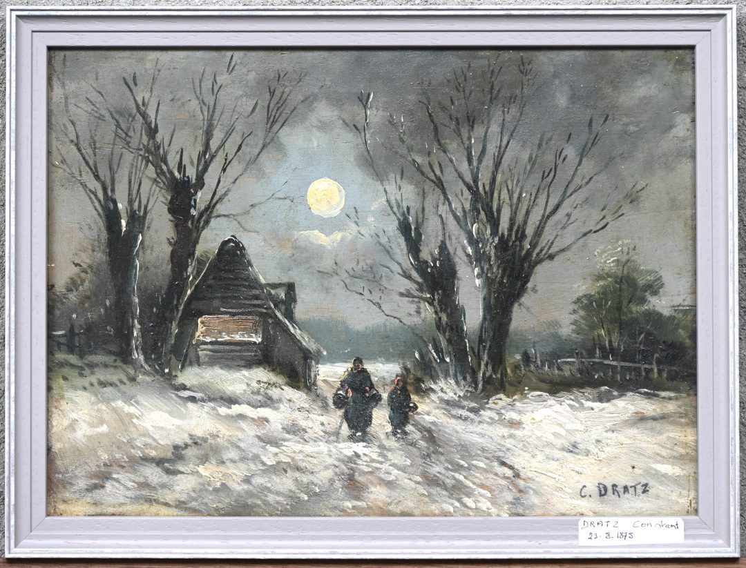 "Cows in the Ditch", a painting, oil on canvas, unsigned. -