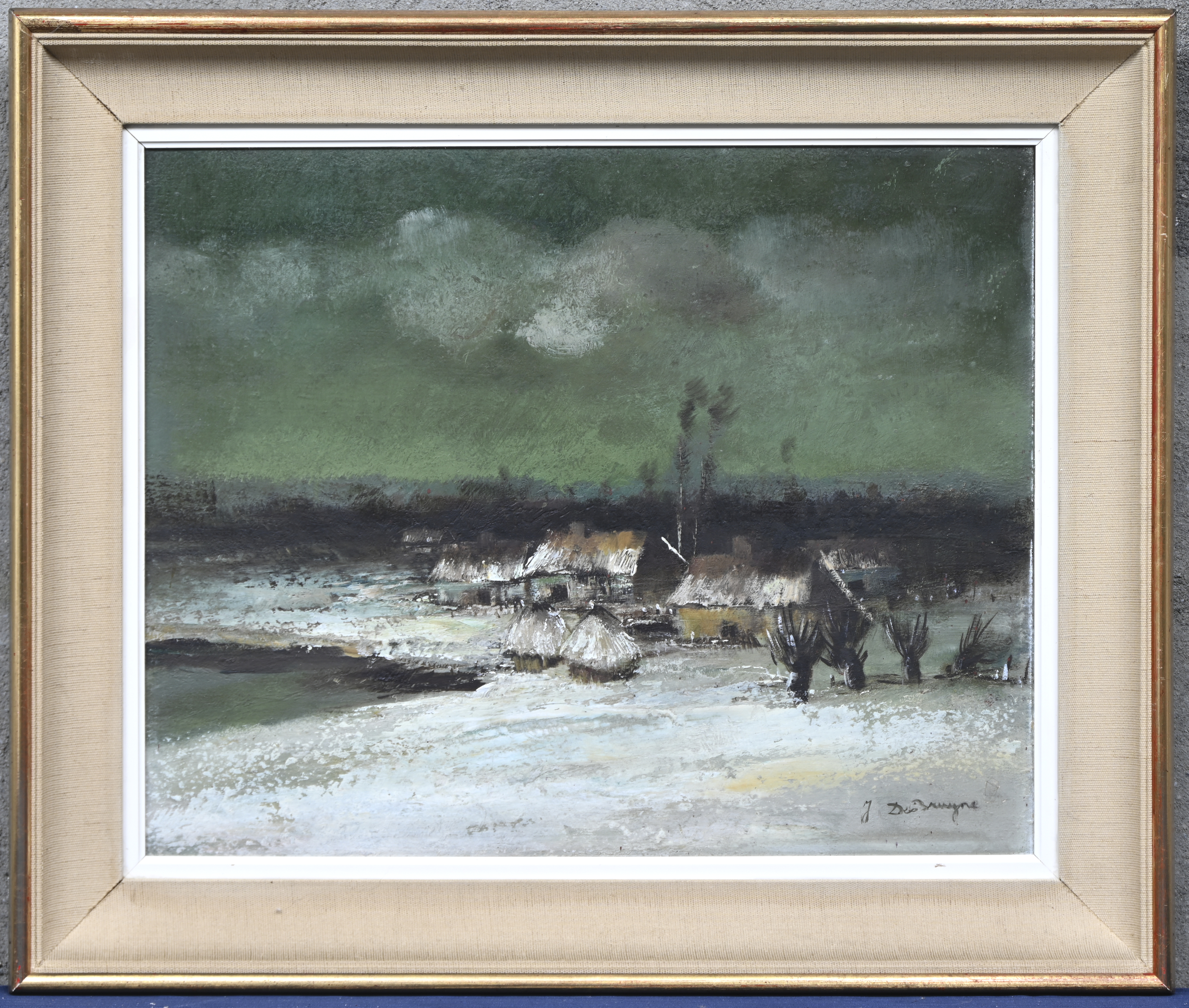 “Winters landschap”, een schilderij, olieverf op paneel, gesigneerd.