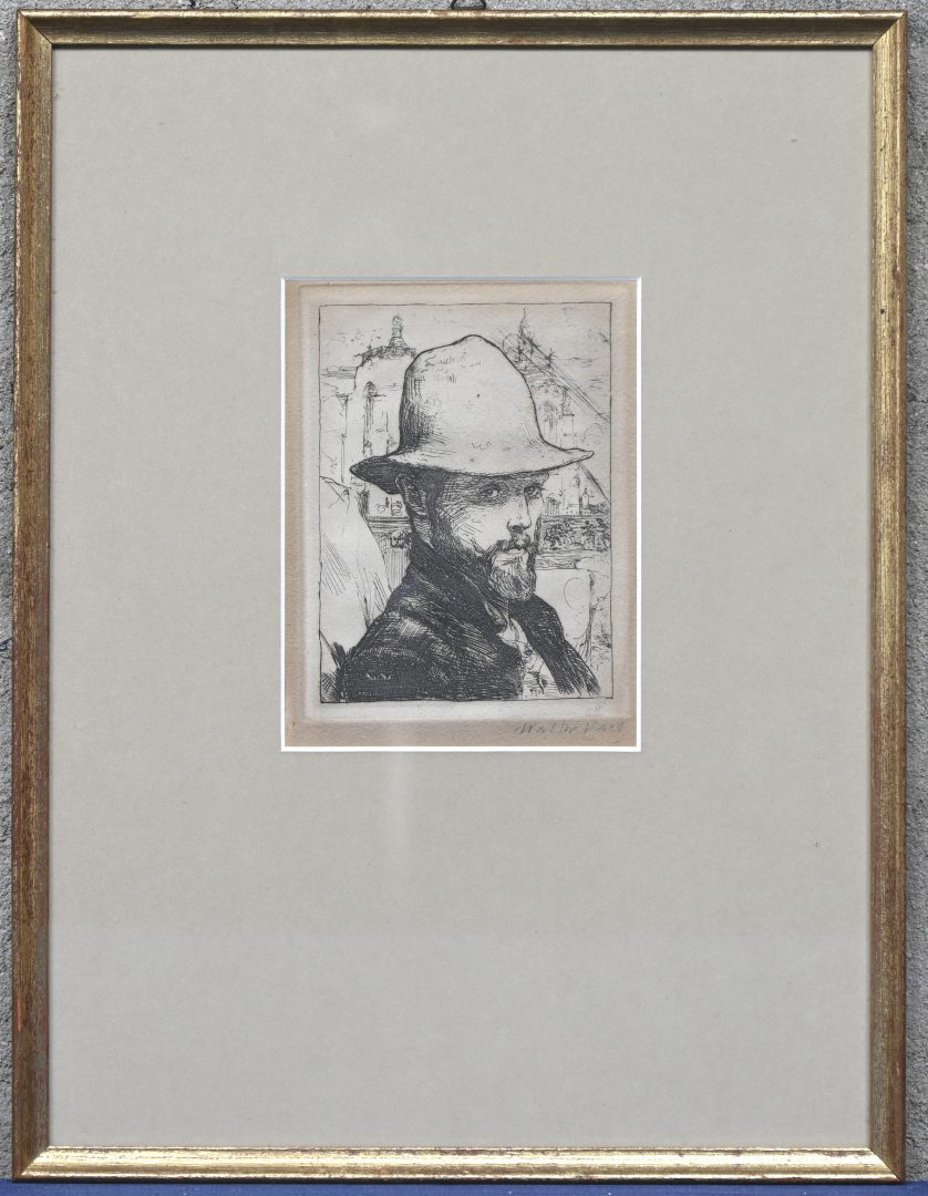 ‘Self-portrait’, a monochrome etching. Signed Walter Vaes.