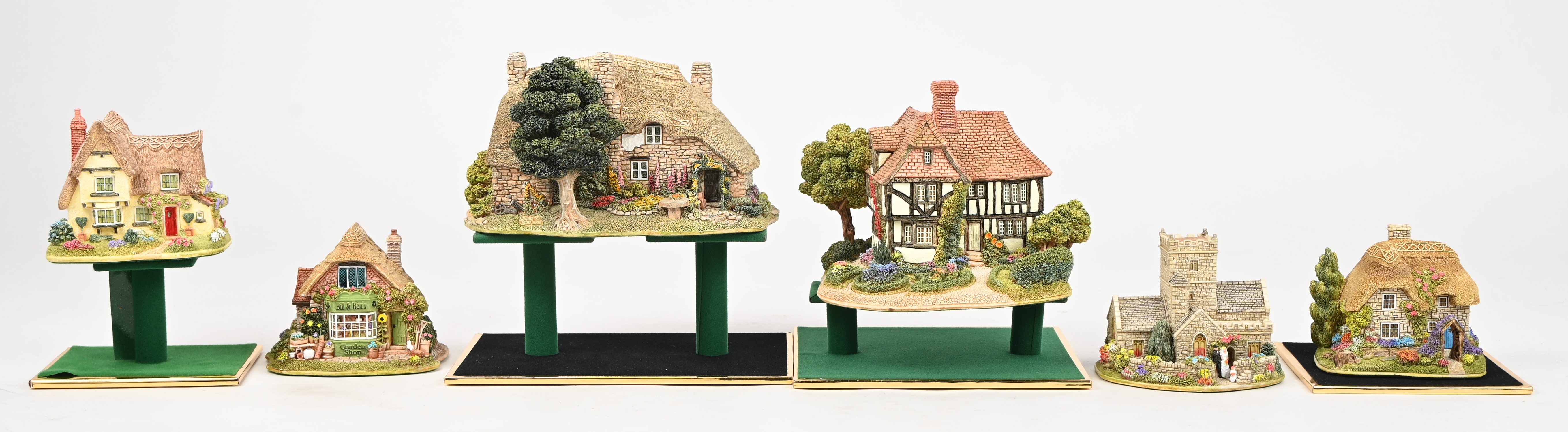 Zes ‘Lilliput Lane’ huisjes. In OVP, de meeste met attest. ‘Old Mother Hubbard’s’, ‘Medway Manor’, ‘Bill and Ben’s’, ‘Here Comes The Bridge’, ‘Little SDplinters’ & ‘Home Is Where The Heart Is’.