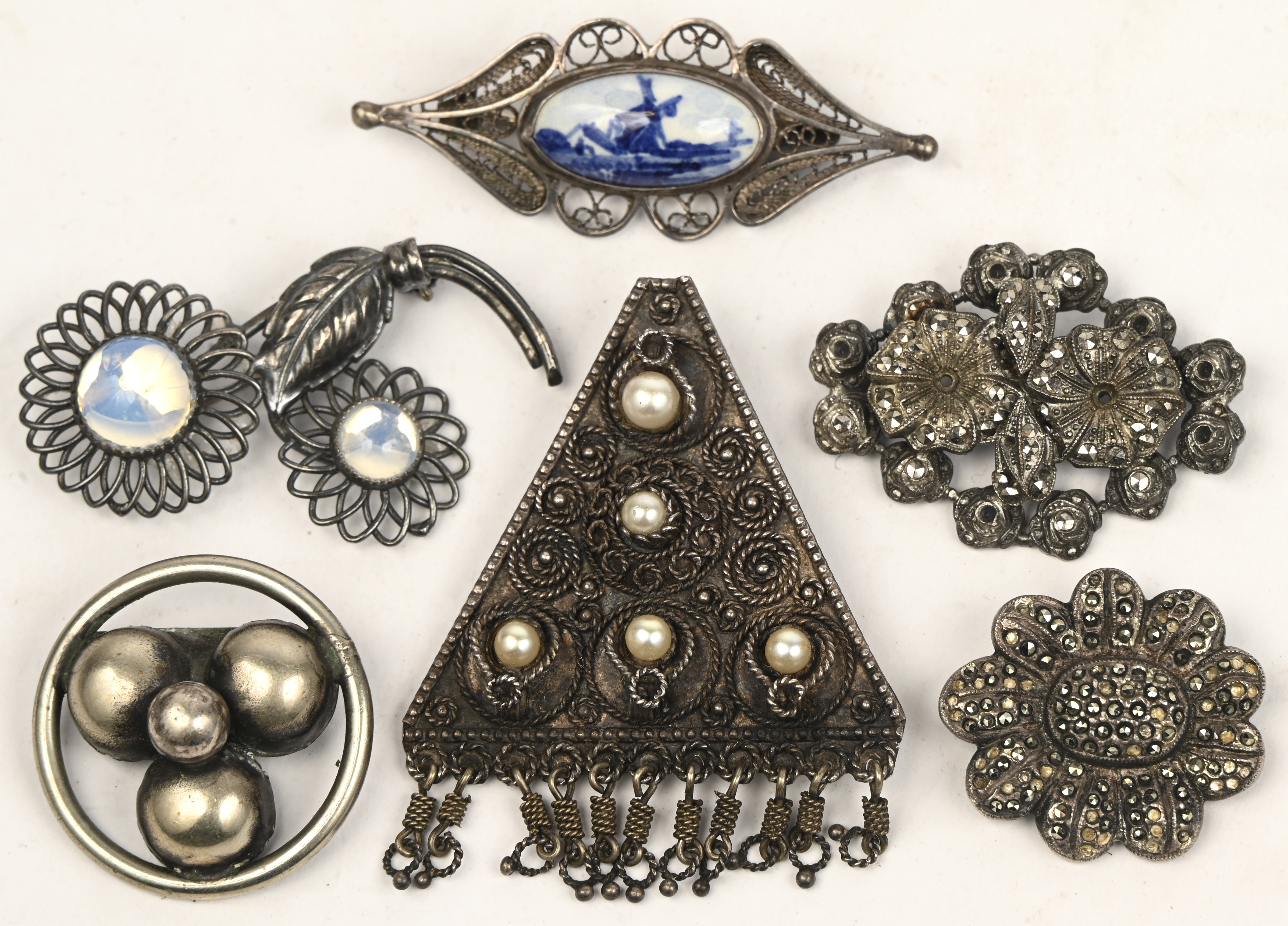 Vijf verschillende zilveren ringen bezet met fantasiestenen. 925‰.