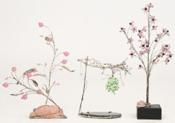 A lot of 3 silver trees, marked 800, combined with minerals. -