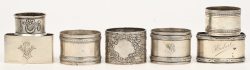 Seven silver napkin rings, 5 marked 800, 1 marked 925, and 1 unmarked. With a total gross weight of 195 grams. -