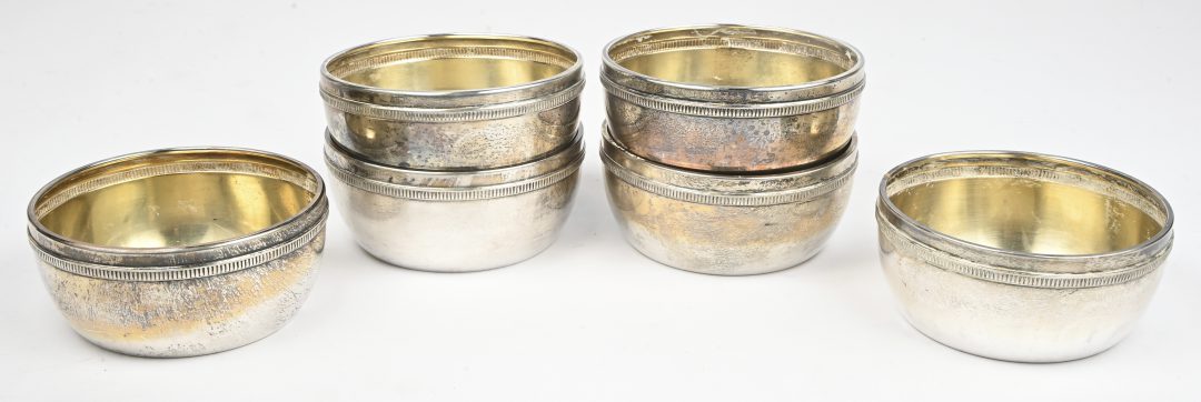 Zes zilveren vingerkommetjes. Gemerkt 916 ‰.