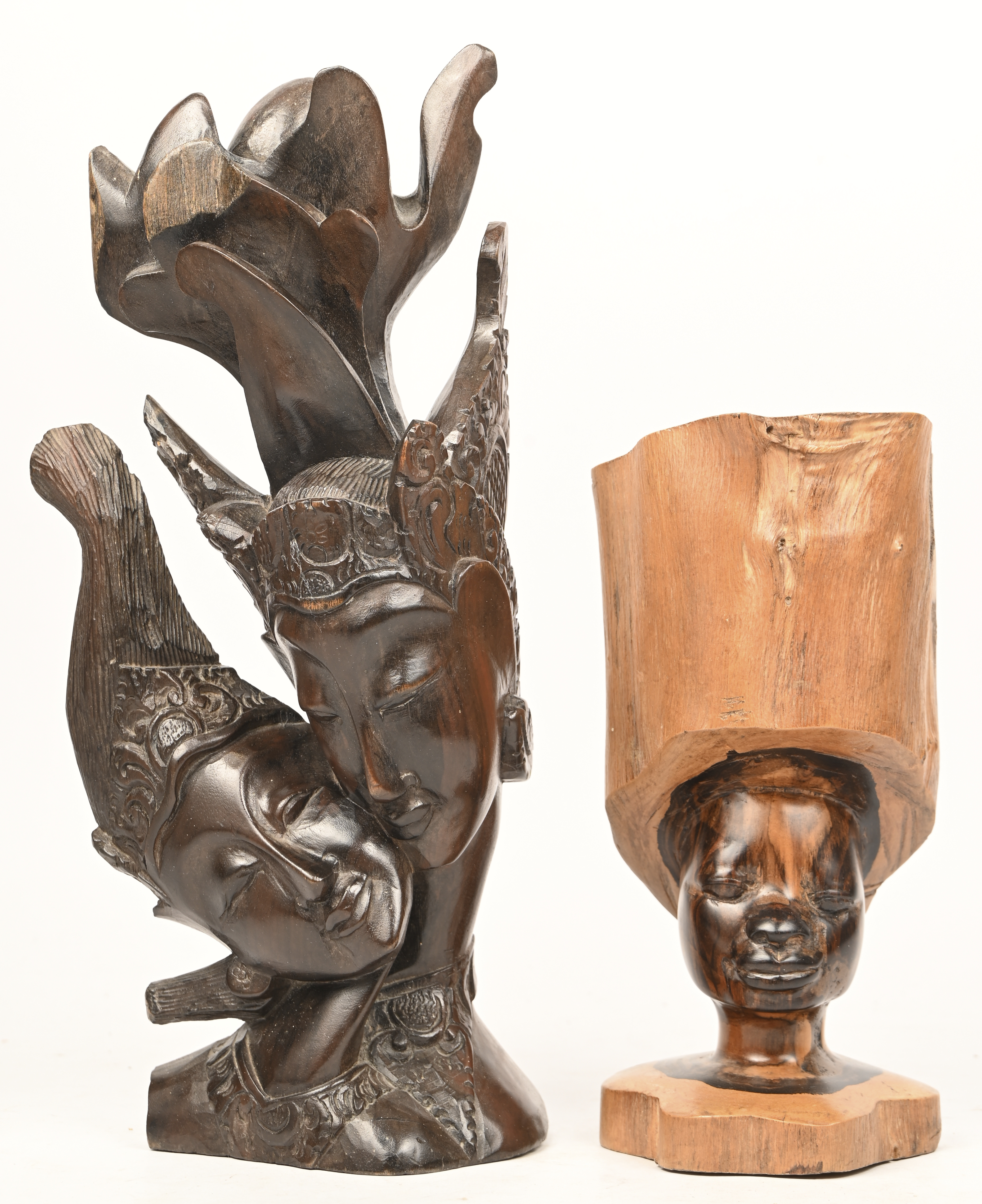 An Asian room divider in two parts. Carved wood, featuring plants and geese in high relief. Multiple minor damages on the relief.No longer availableDim. 183/160 cmEstimate: € 150 / 200 -
