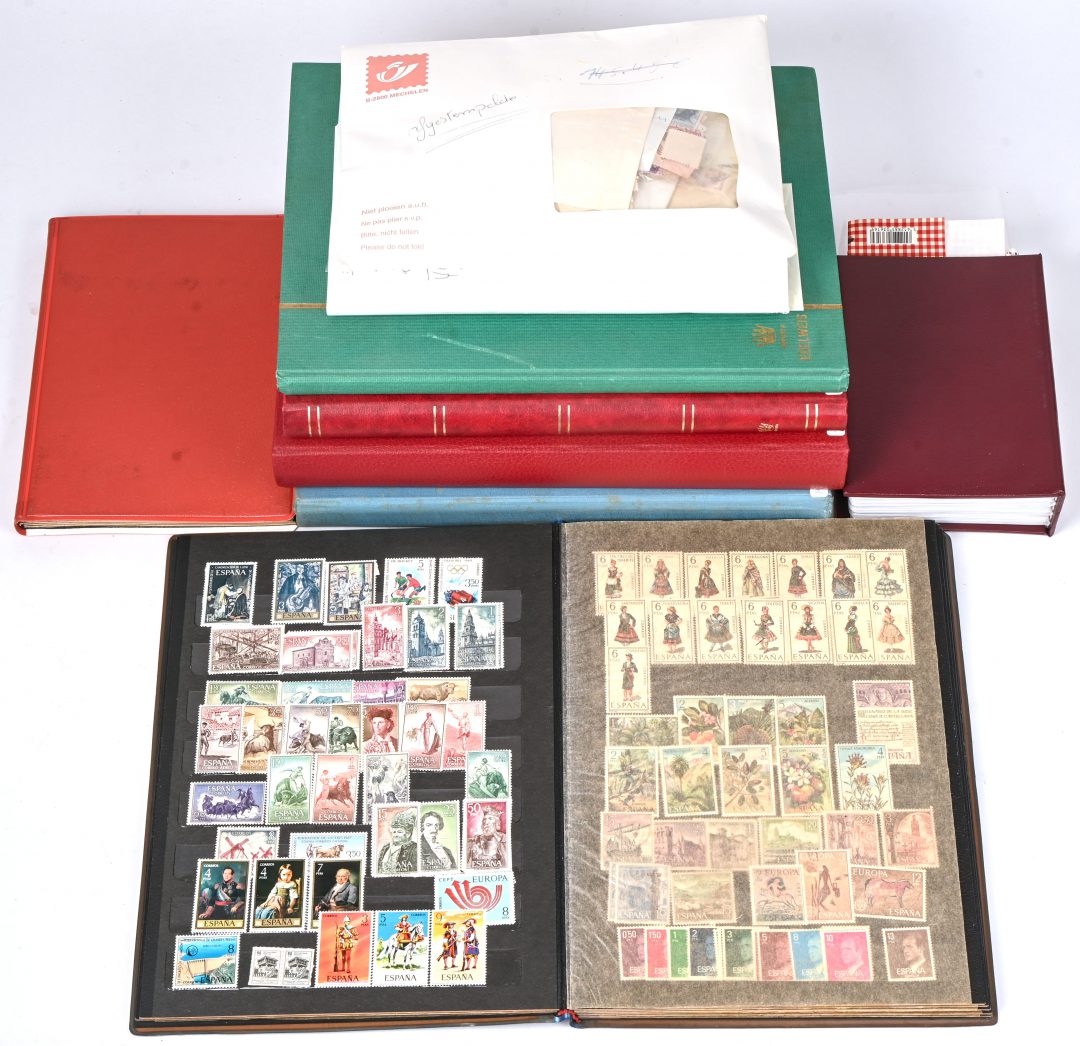 Zeven albums en twee omslagen met zegels, grotendeels postfris. Voornamelijk Belgisch.