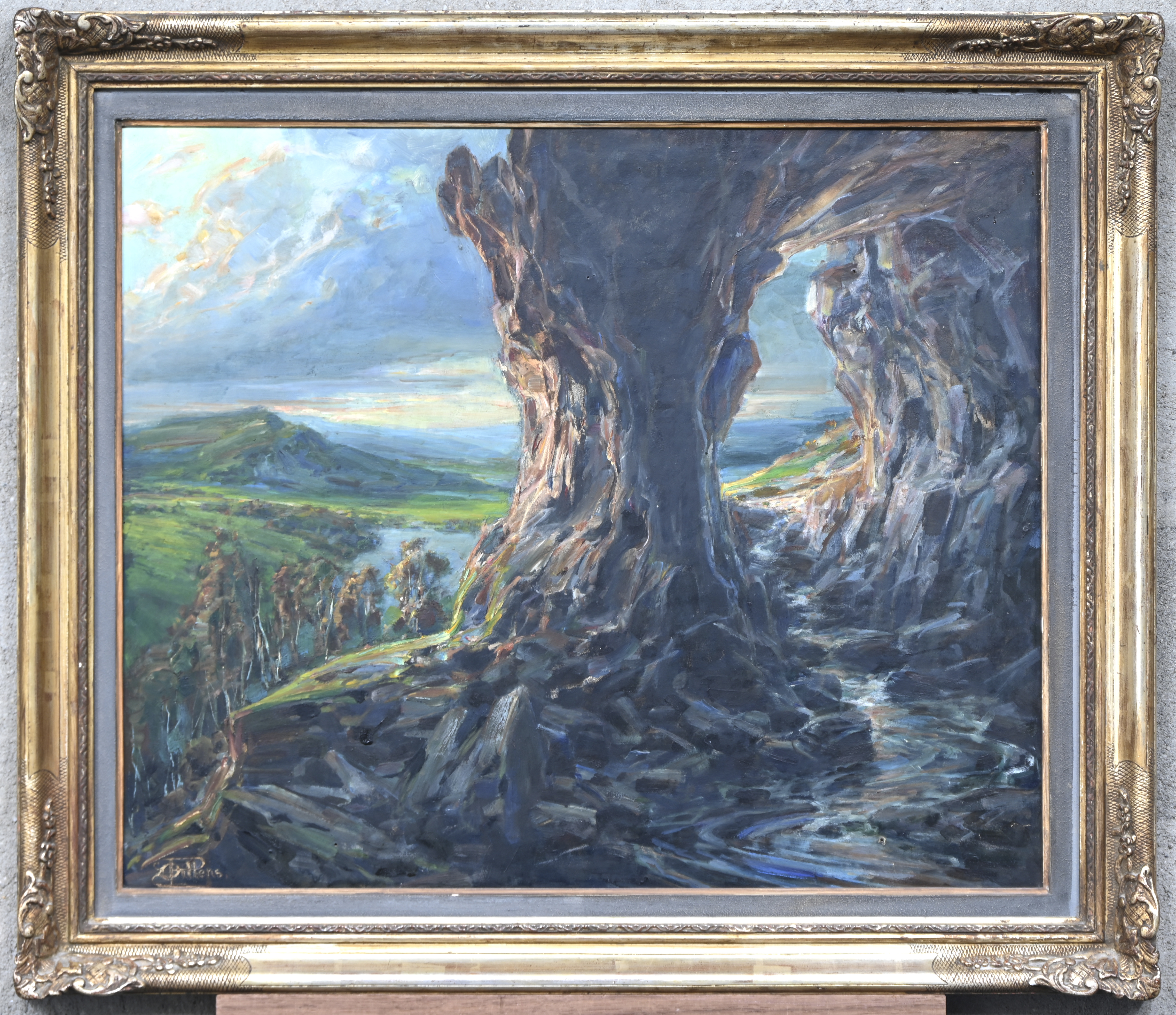 ‘Sous le frenissement des feuillages’, olieverf op doek. Getekend.
