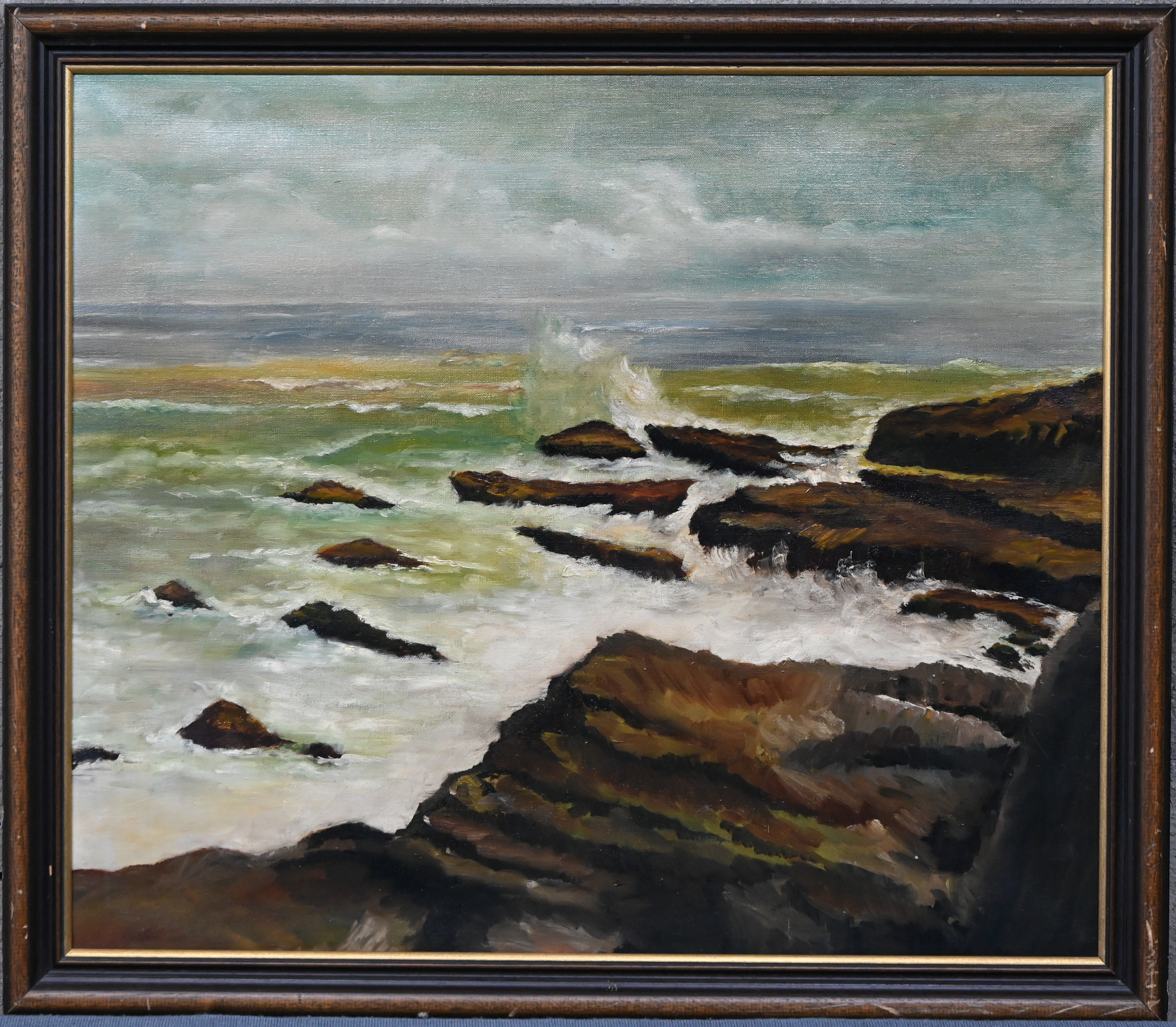 "Cows in the Ditch", a painting, oil on canvas, unsigned.