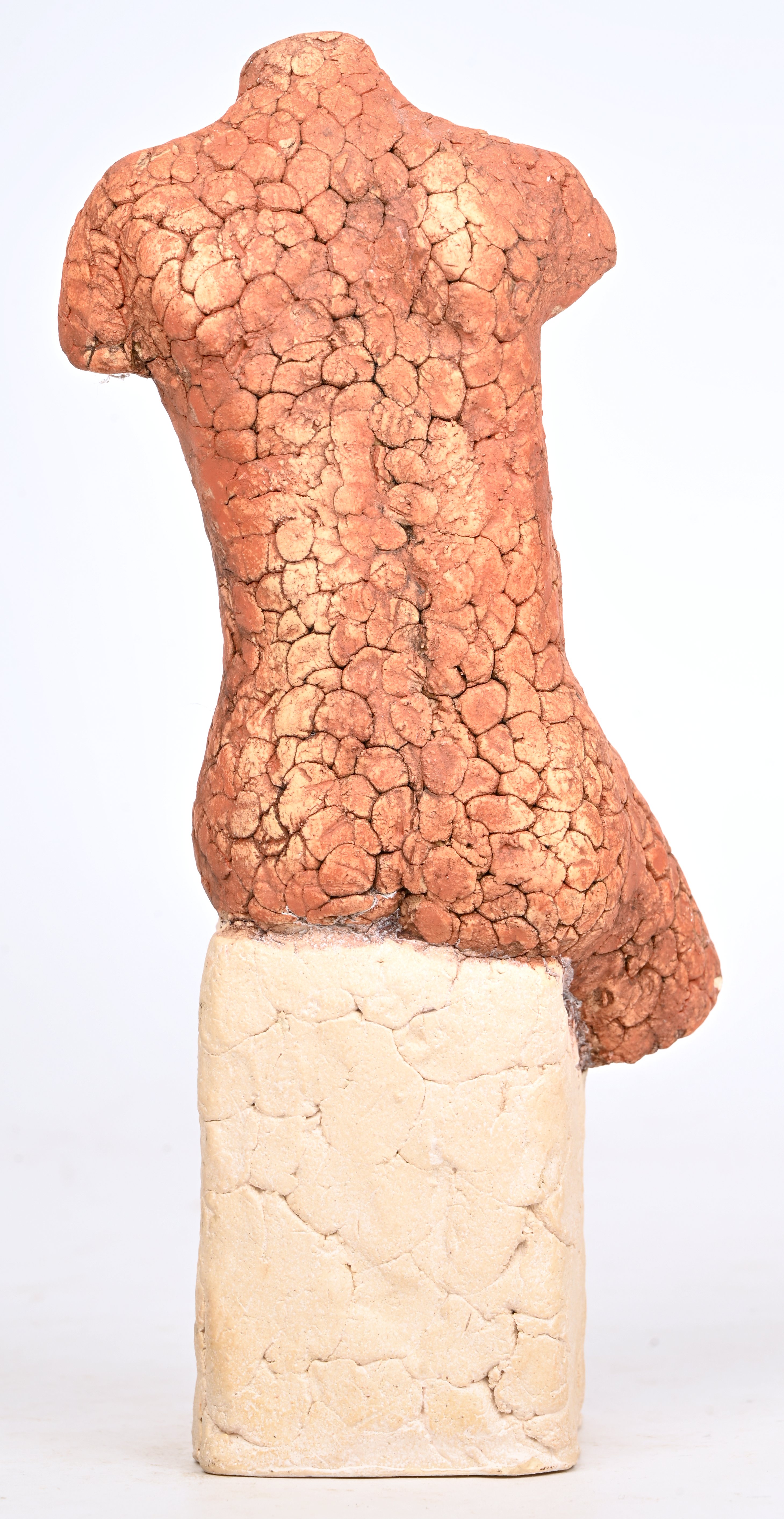 A carved wooden female torso, unsigned. -