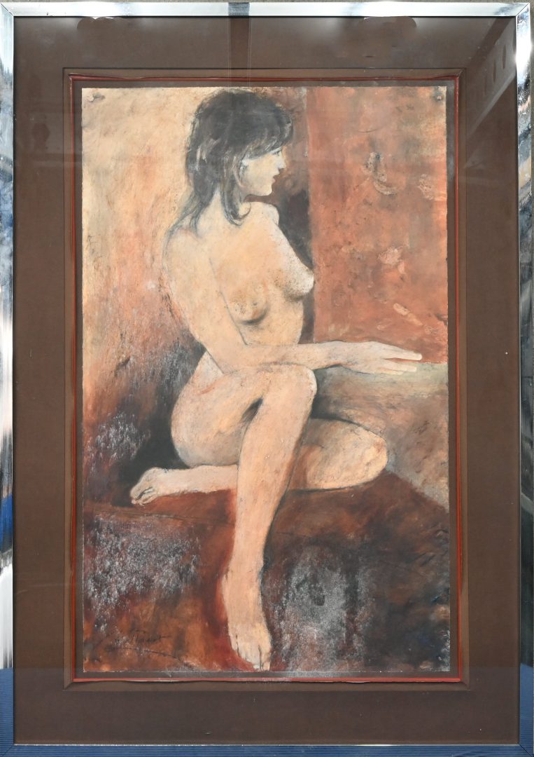 #64Gust Verhelst‘Staand naakt’, olieverf op doek. Getekend Gust Verhelst.