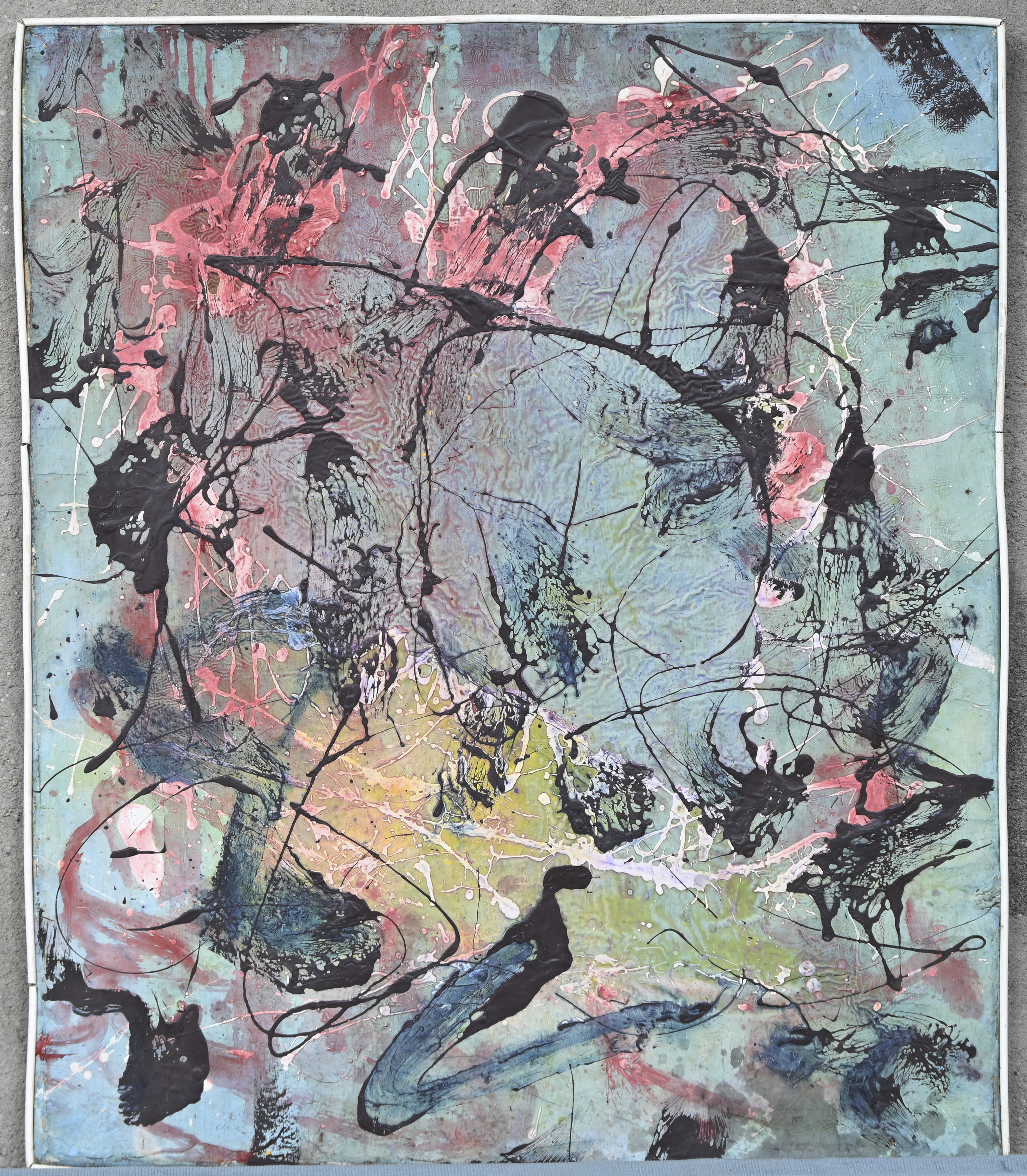 'Untitled'. Action painting, acrylic on canvas. Not signed.