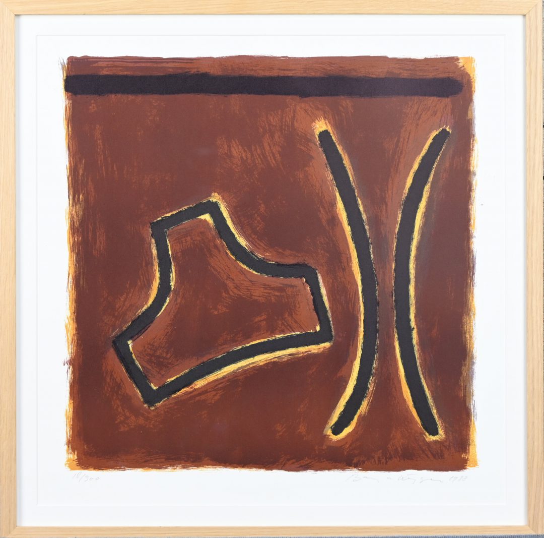 ‘Abstracte compositie’, kleurenlithografie, Getekend; Jan Dijker, 1993. Nr. 45 uit een oplage van 50 exemplaren. Jan Dijker was een Nederlands kunstenaar die vooral bekend werd door zijn monumentale en kerkelijke kunst.
