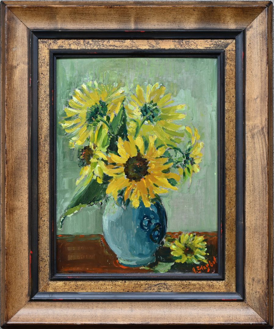 #73“Huis aan de horizon”, een panoramisch werk, gemengde techniek op papier, gesigneerd.