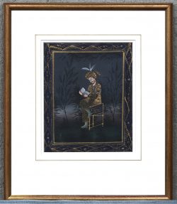 #256“De lezende Sultan”, een schilderij, op zijde, in passe-partout. Afkomstig uit India.