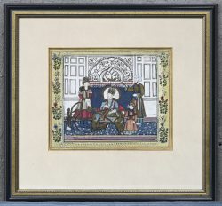 #257“Op audientie”, een schilderij, op zijde, in passe-partout. Afkomstig uit India.