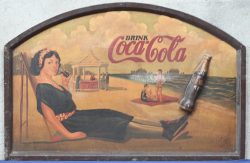 #183Een houten reclame paneel naar de oude reclames van Coca Cola.