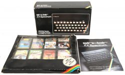 A Sinclair ZX Spectrum personal computer, 48k in original box and packaging, in new condition, with the accompanying set of 8 games on cassette (boxes of cassettes in lesser condition).No longer availableEstimate: € 400 / 600 -