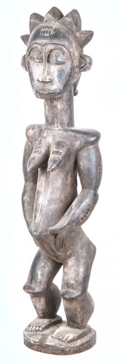 An ancestral figure carved from wood of a woman.No longer availableDim. H. 66 cmEstimate: € 90 / 120 -
