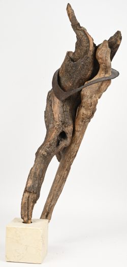 "Abstract wooden figures with metal. Sculpture."No longer availableDim. h 66 cmEstimate: € 80 / 120 -