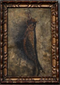#274‘Stilleven met gerookte haring’, olieverf op karton. Getekend Hipp Van Heesvelde, 1923.